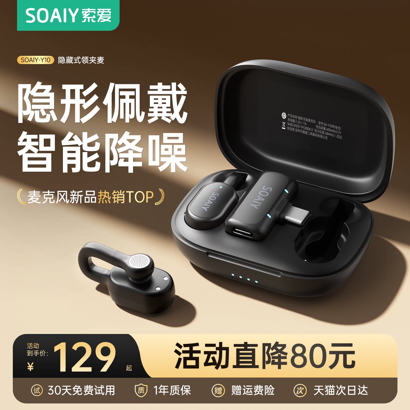 索爱Y10直播麦克风无线夹领式收音麦手机录音拍视频VLOG专用设备