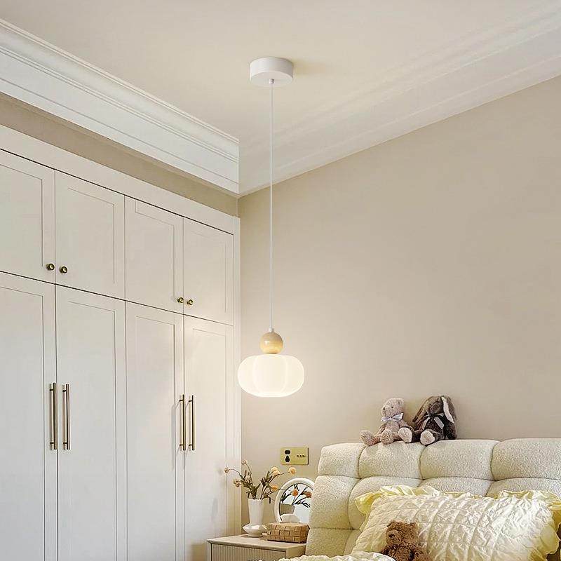 奶油风卧室床头小吊灯现代简约主卧房间壁灯网红艺术感吊线灯无