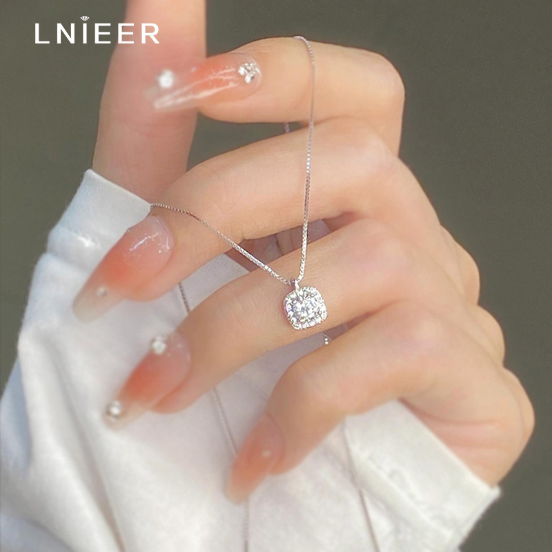 S925纯银小方糖项链女轻奢精致2025爆款小众颈链百搭高级感锁骨链
