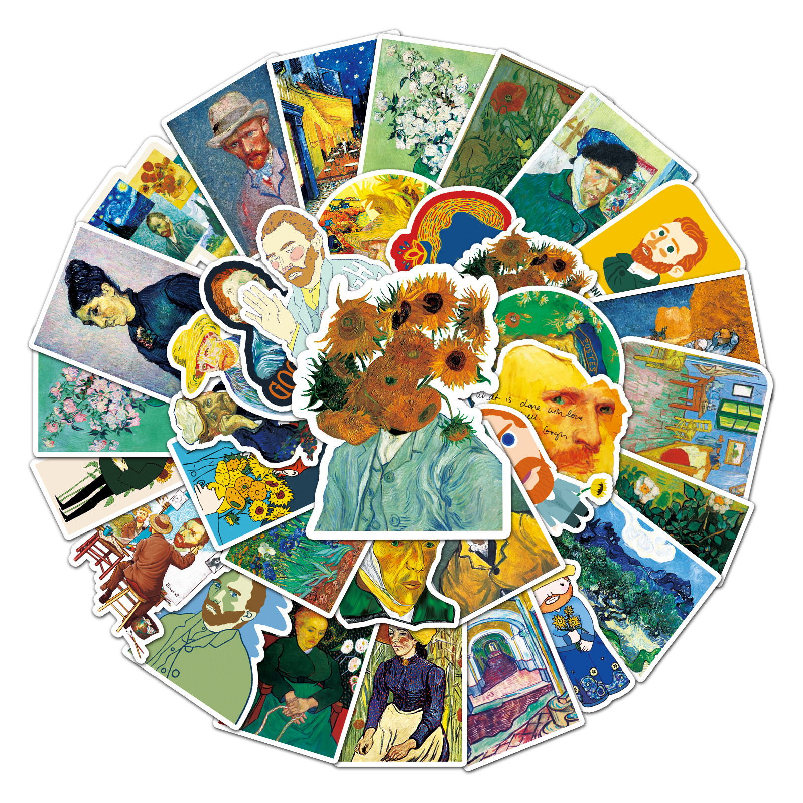 100张梵高贴纸艺术创意油画作品ins风文艺图案装饰贴画行李箱笔记本电脑手机壳水杯平板吉他手账文具防水贴纸