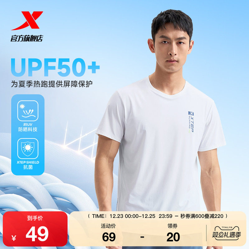 特步防晒短袖男士新款夏季运动半袖抗菌跑步训练透气健身上衣T恤