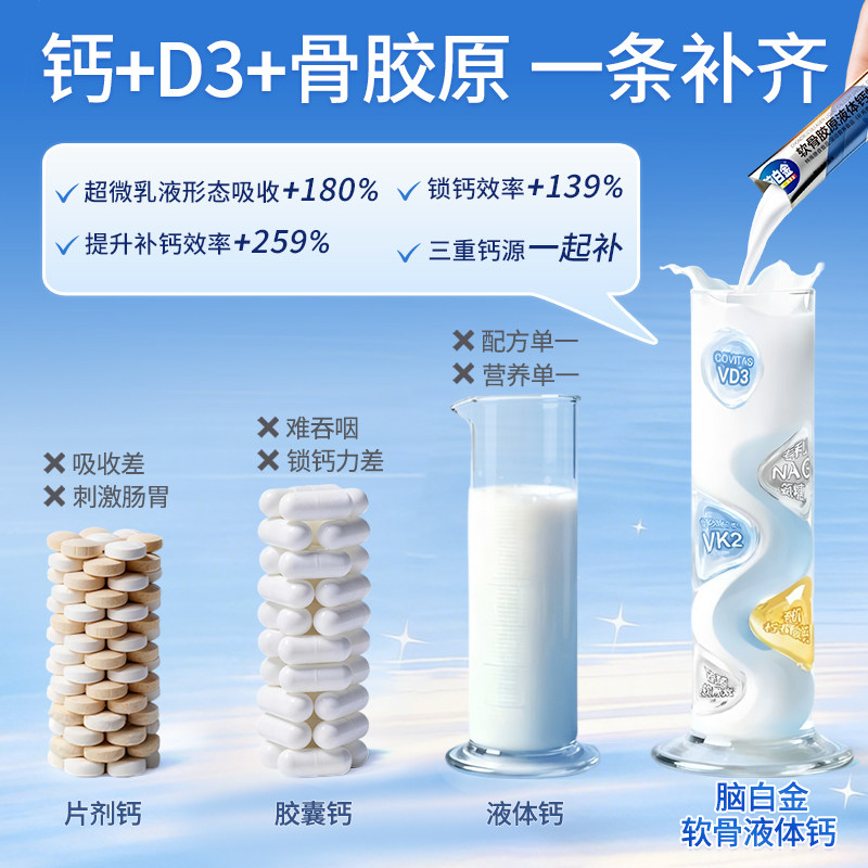 钙尔奇铂金液体钙蓝帽子维生素d3K2女性中老年年孕妇补钙片送礼