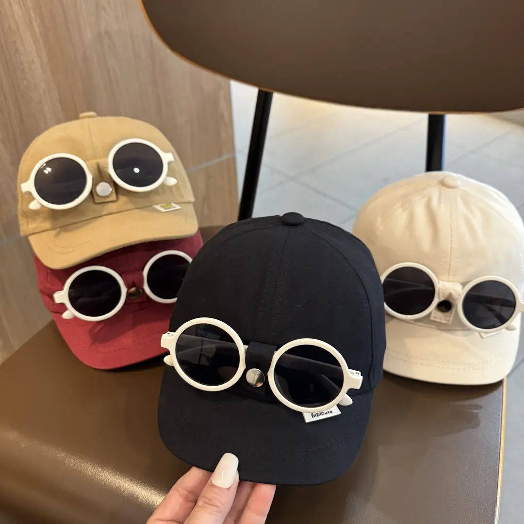 潮酷拆宝宝墨镜鸭舌帽眼镜可小童飞行员帽子二合一防晒遮阳棒球帽