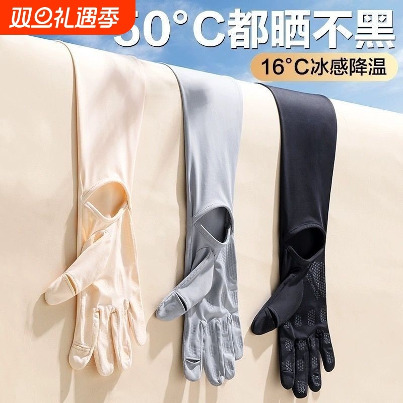 开车防晒袖套女防紫外线冰丝手套户外夏季加长手臂套手指防滑硅胶