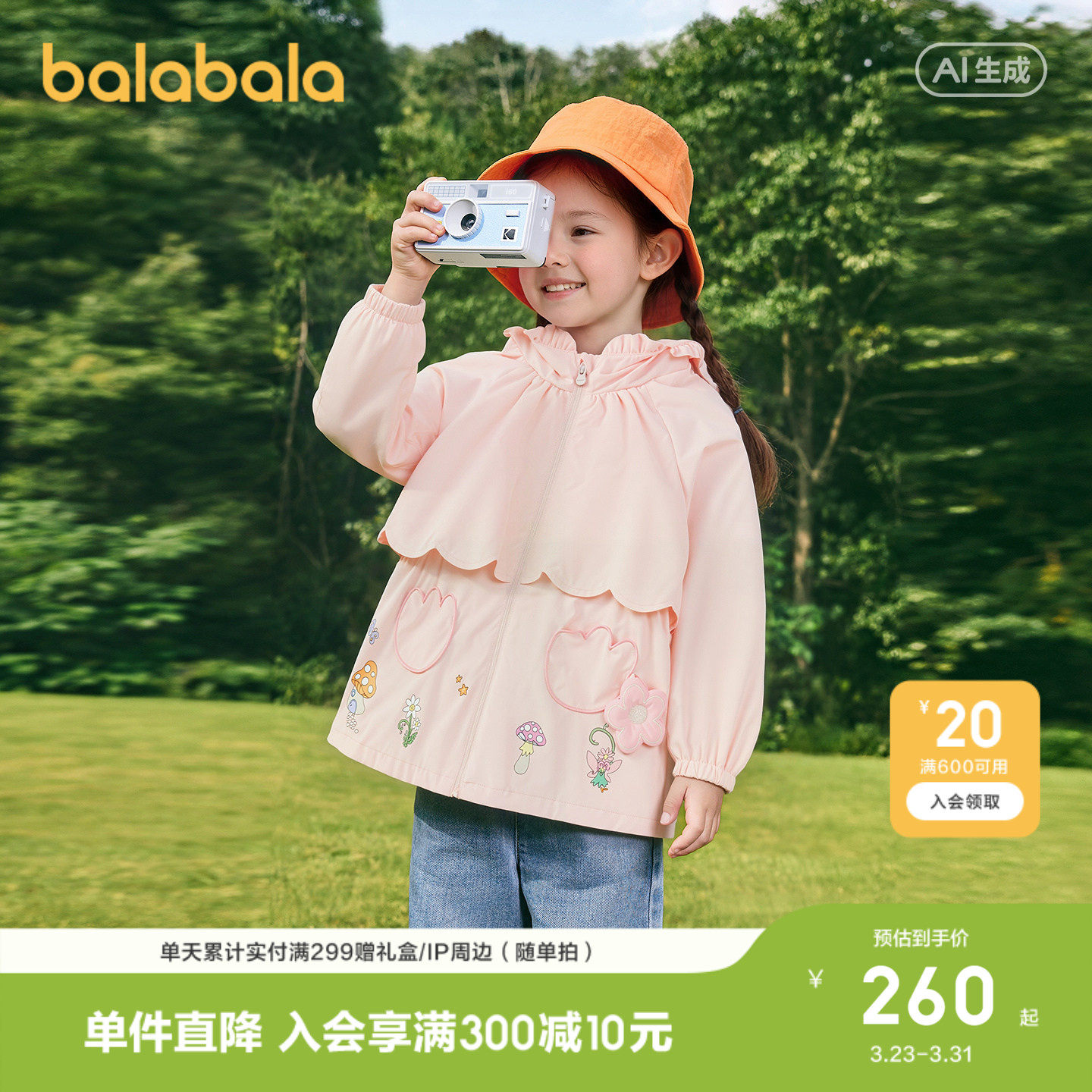 【商场同款】巴拉巴拉童装儿童外套女童2026新款春装连帽防护上衣