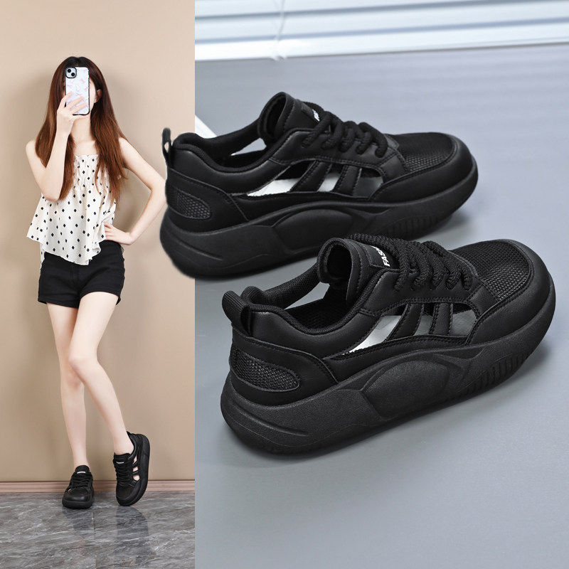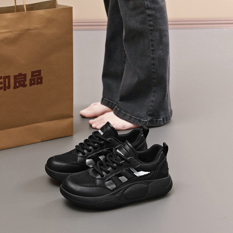 时尚蜘蛛王踩屎感厚底黑色工作鞋女2026新款夏季网面透气网鞋女上