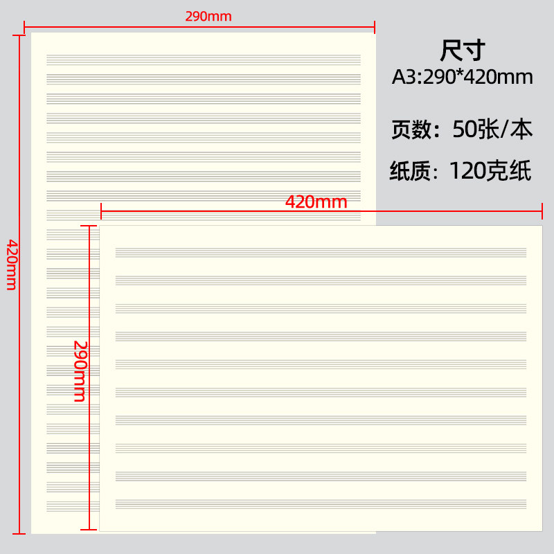 A3五线谱本初学者大间距大格钢琴乐理练习本吉他架子鼓音符作业本