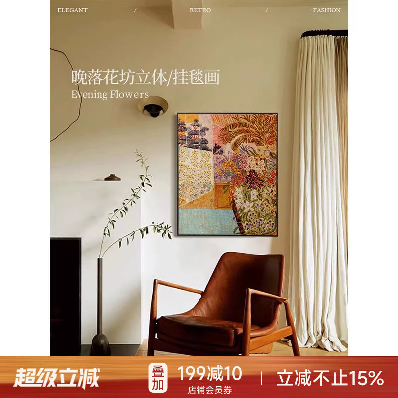 【孤品35折】蜡笔派晚落花坊挂画中古风挂毯高级客厅入户玄关画