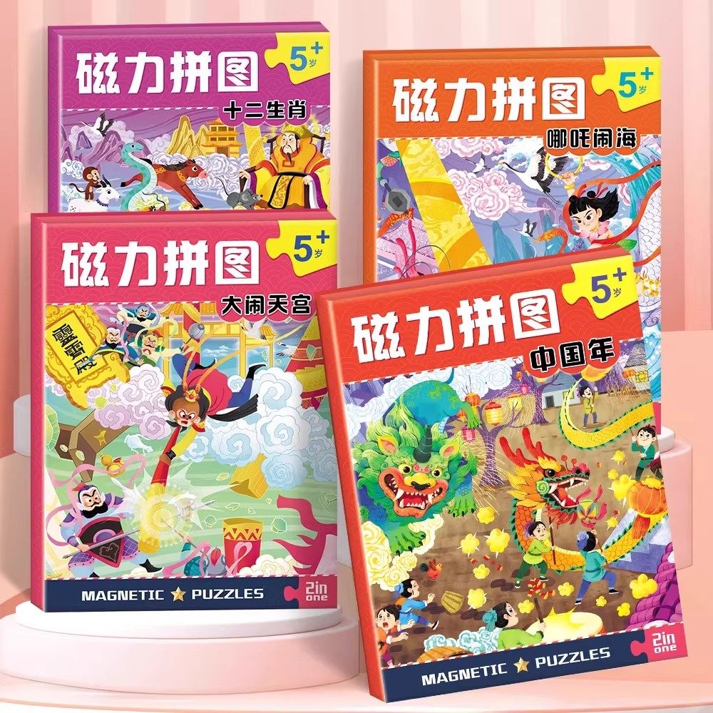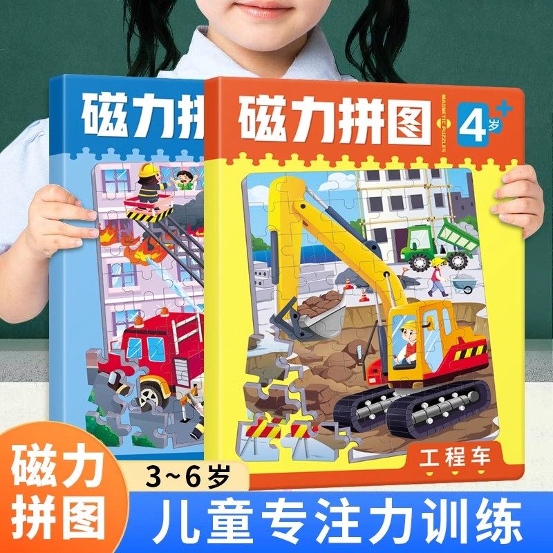 儿童磁力拼图3到6岁工程车男孩恐龙动物女孩公主宝宝益智磁性玩具