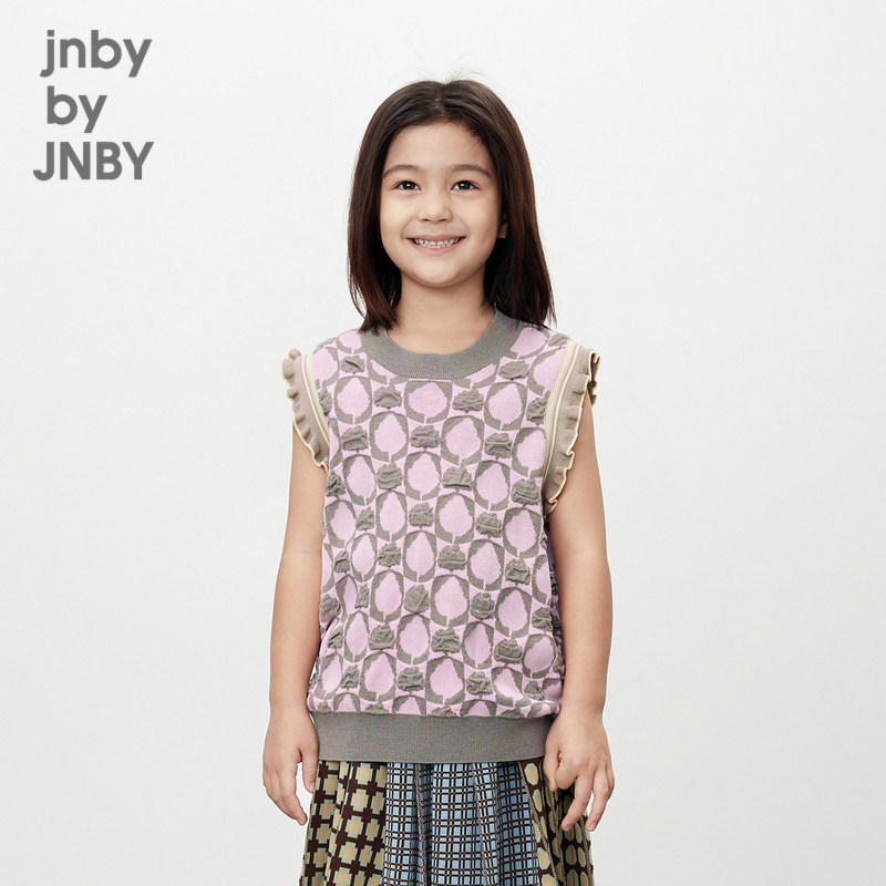 江南布衣童装棉舒适针织背心棋盘格木耳边春女童儿童jnbybyjnby