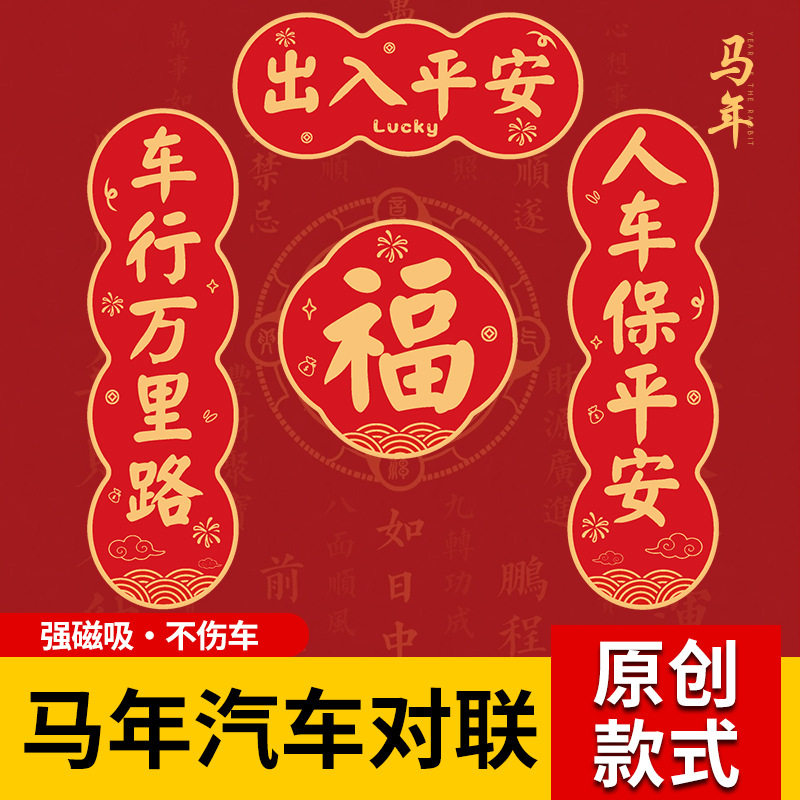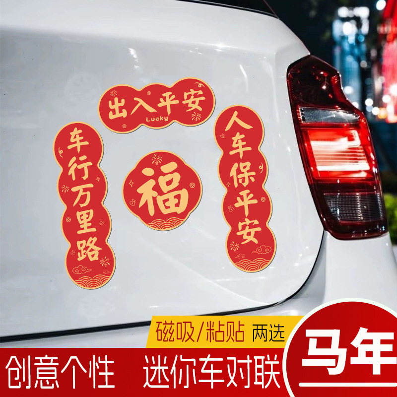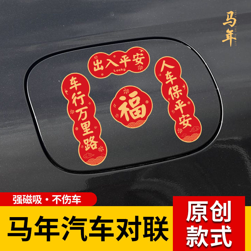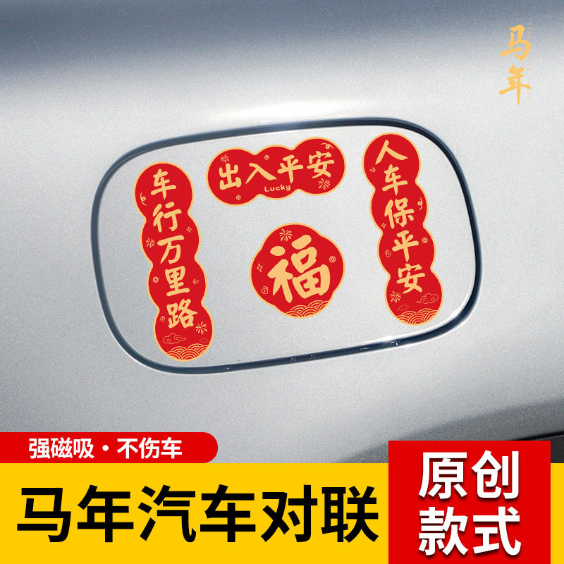 2026年马年汽车对联磁吸迷你小春联车贴春节油箱盖车尾车对联贴纸