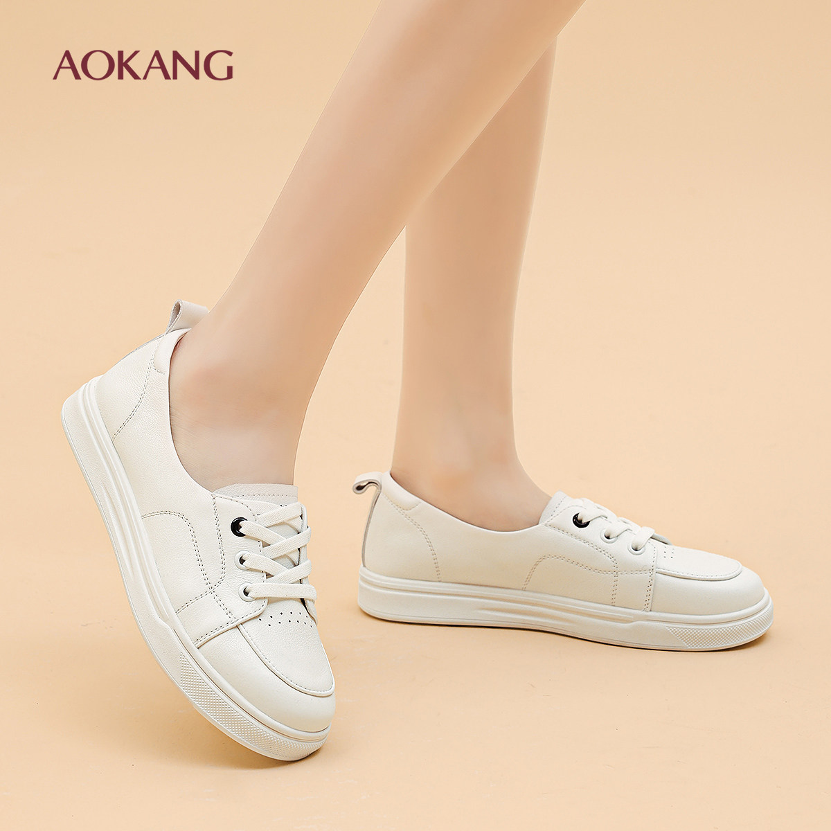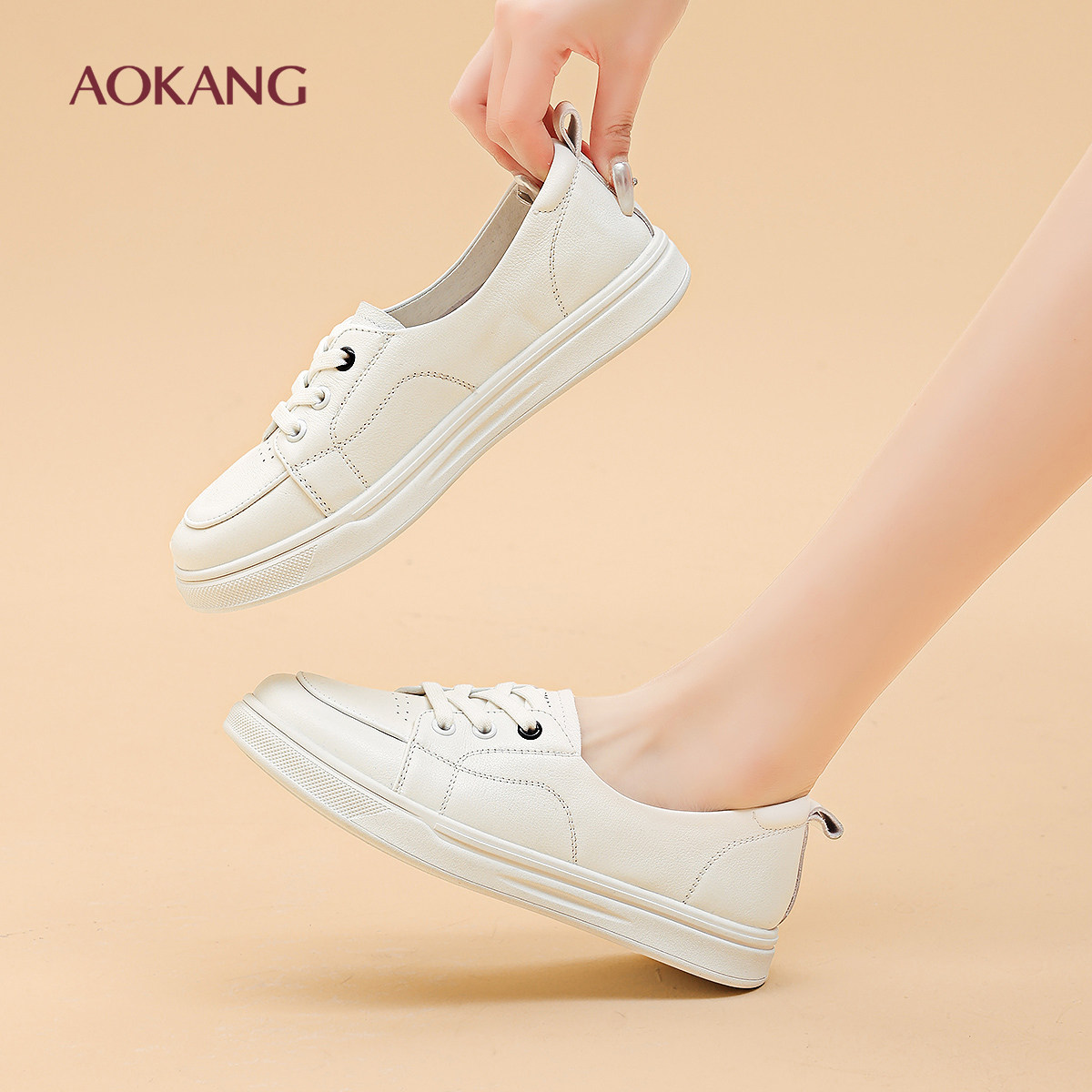 奥康 女鞋2025秋季新款浅口单鞋休闲日常小白鞋不累脚皮鞋N