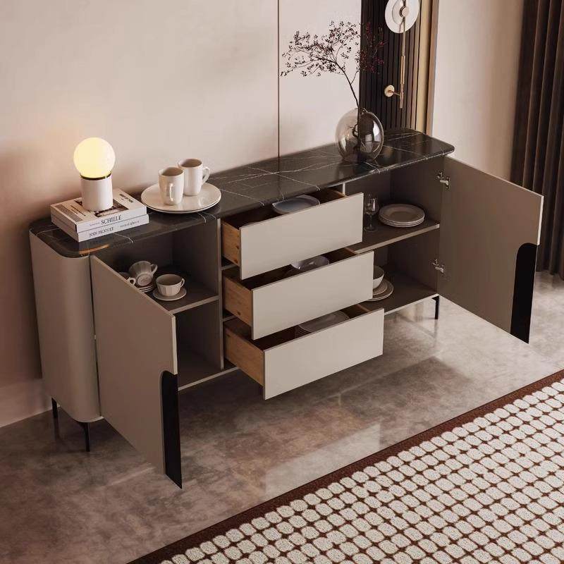 微晶石轻奢实木餐边柜现代简约入户玄关柜家用客厅大容量储物柜