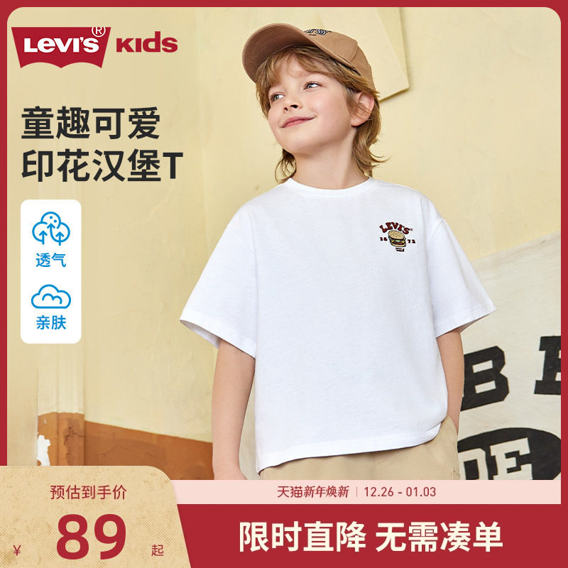 【汉堡T恤】李维斯童装男童短袖2025夏季新款儿童半袖上衣夏装白T