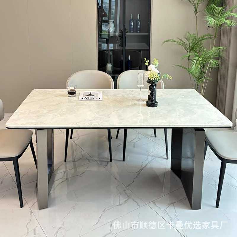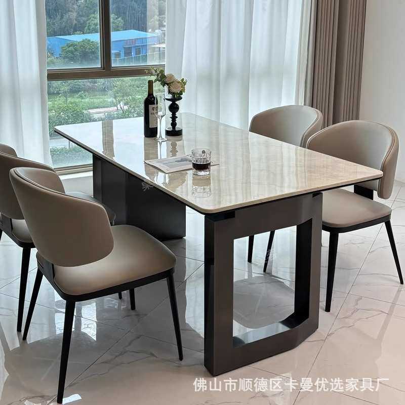 轻奢高端大理石餐桌椅子奢石天然超晶石微晶石高级感奢石彩晶石桌