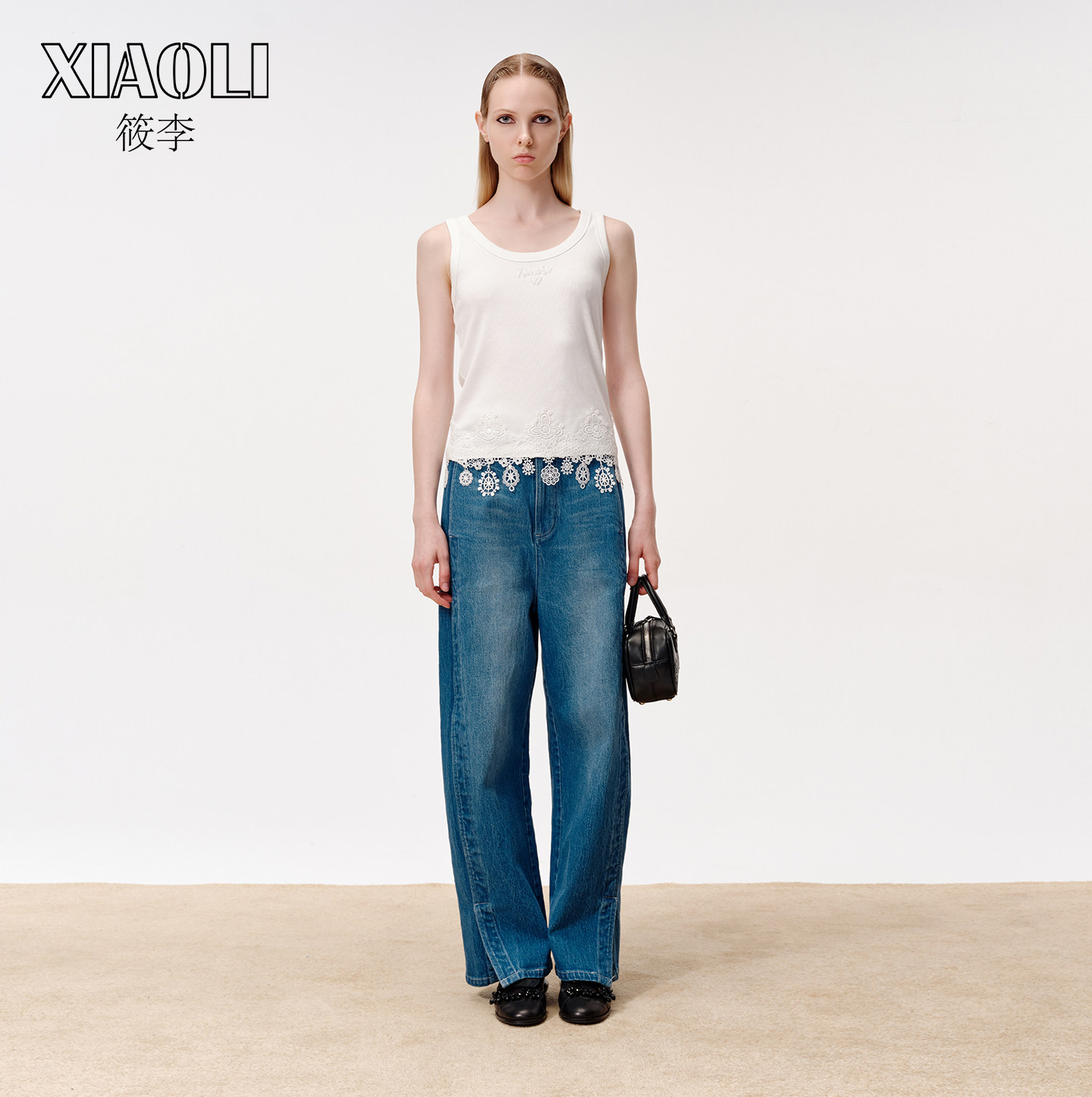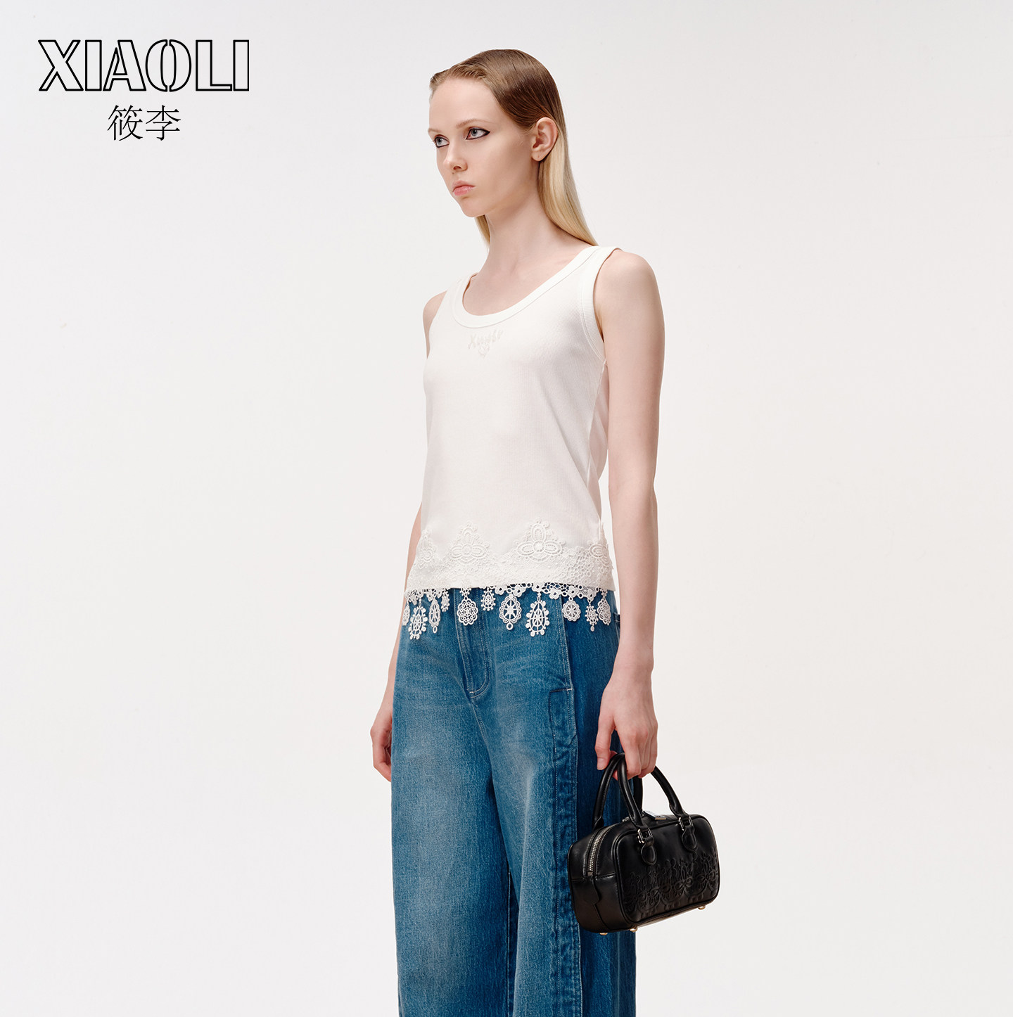 【XIAOLI筱李】百搭蕾丝拼接白色吊带LOGO背心女上衣25秋新品