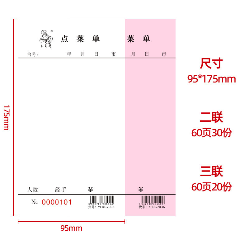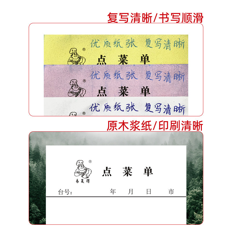 易复得48K空白点菜单二联三联无碳自助复写纸酒楼餐厅酒水单定做