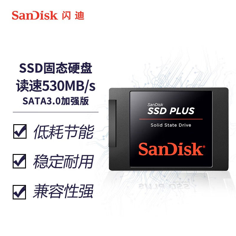 【自营】闪迪SSD固态硬盘笔记本台式机电脑SATA3接口加强版/3D版