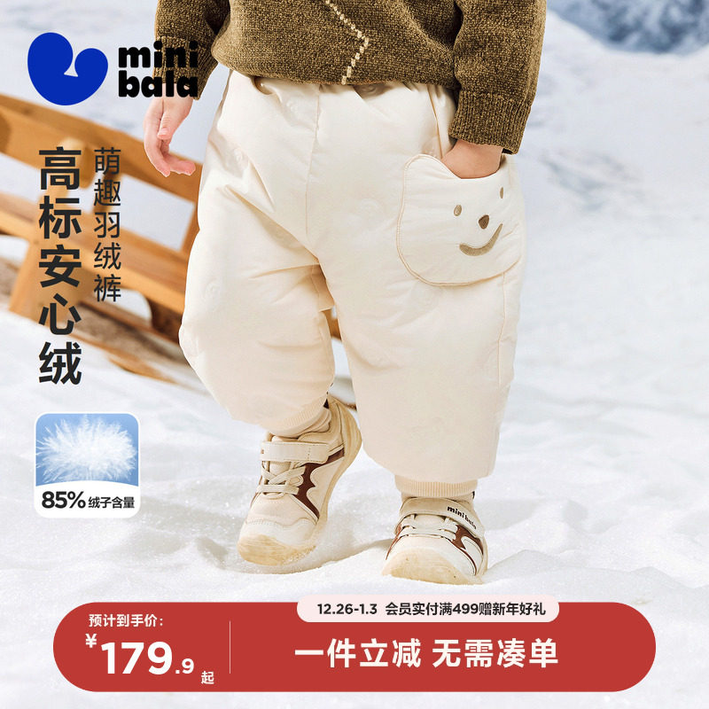 迷你巴拉巴拉男童女童宝宝羽绒裤2025冬新品保暖萌趣可爱造型裤子