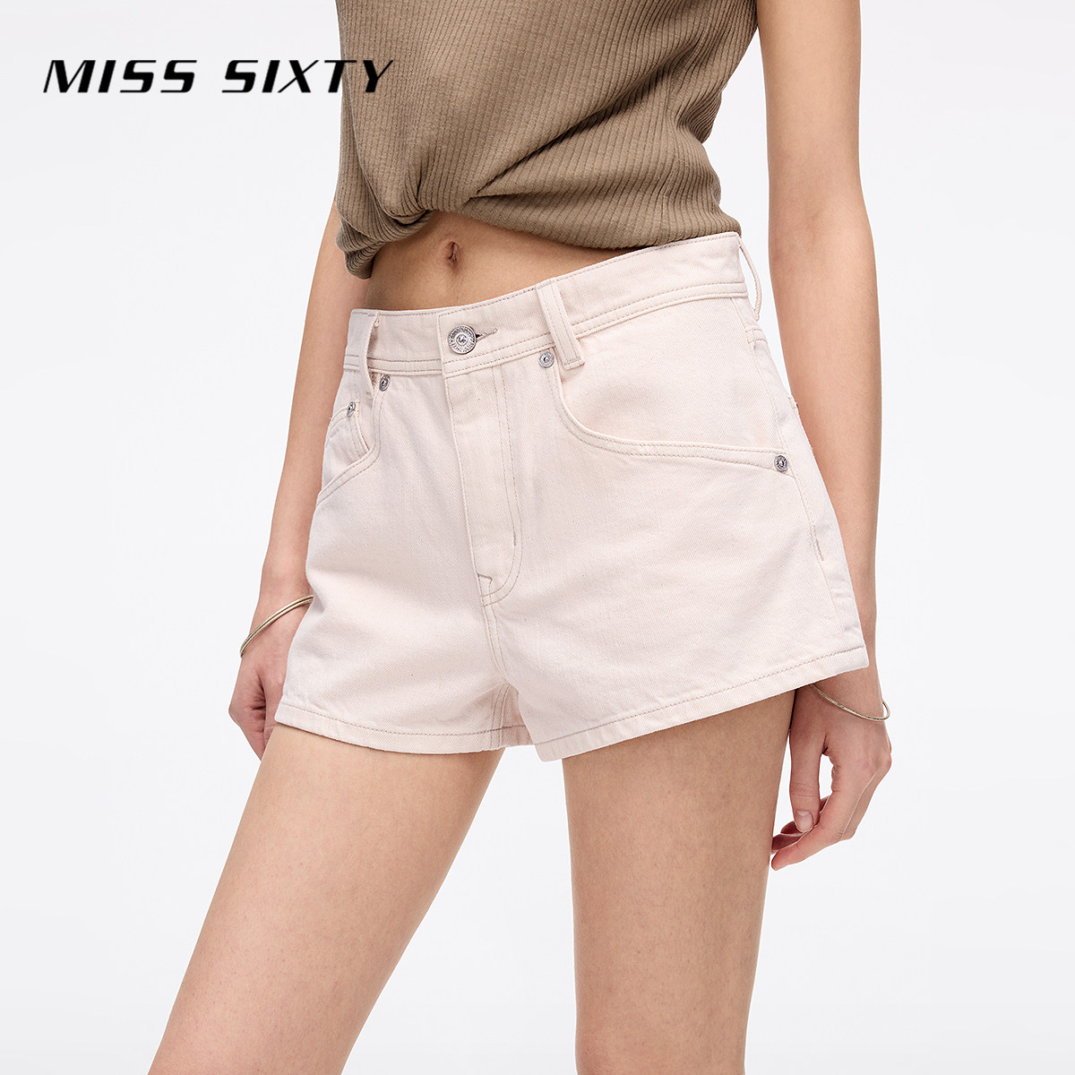 【进口牛仔面料】Miss Sixty2025夏季新款米白牛仔短裤女显瘦百搭