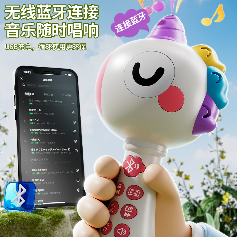 儿童小话筒音响一体麦克风宝宝唱歌机婴幼儿蓝牙唱歌玩具早教音乐