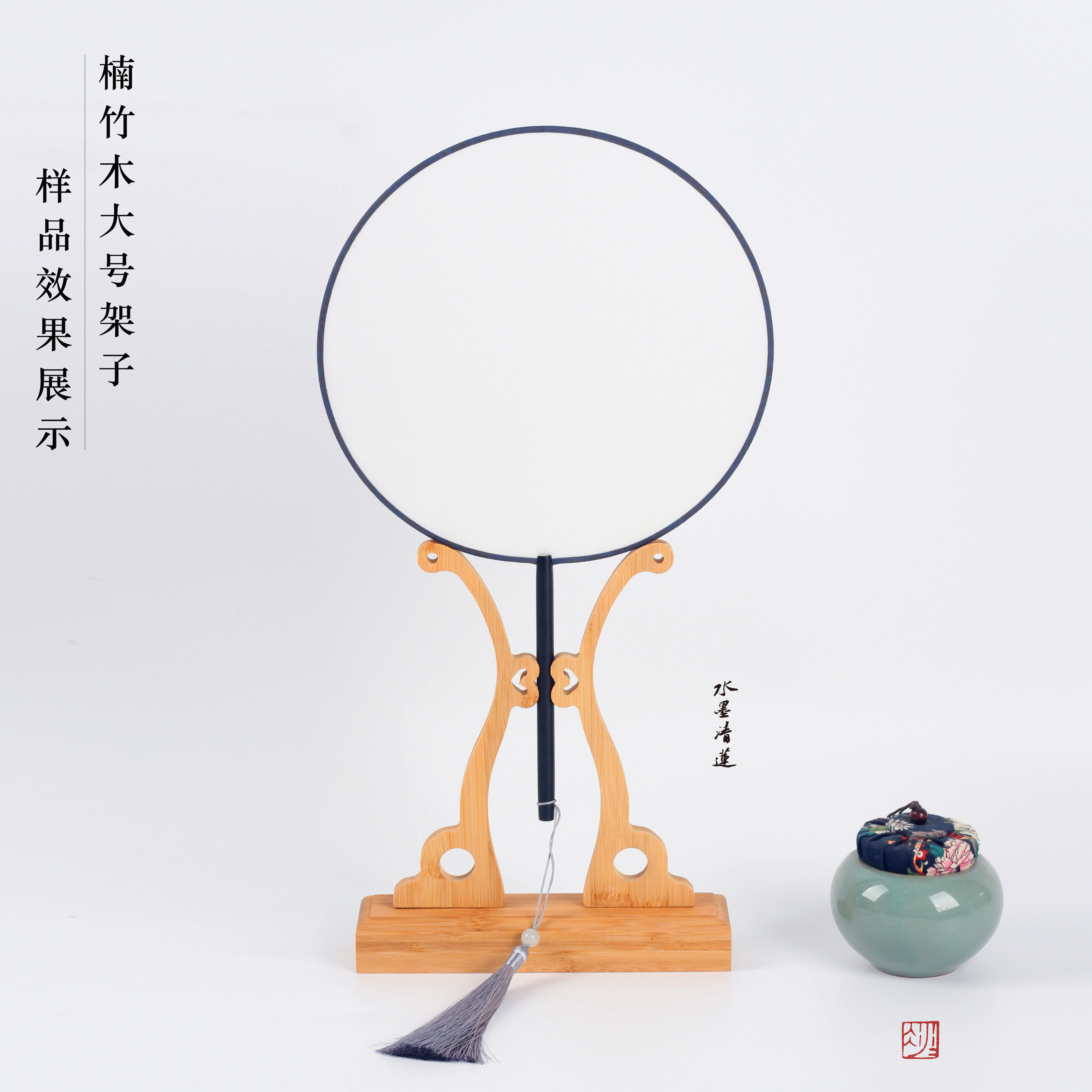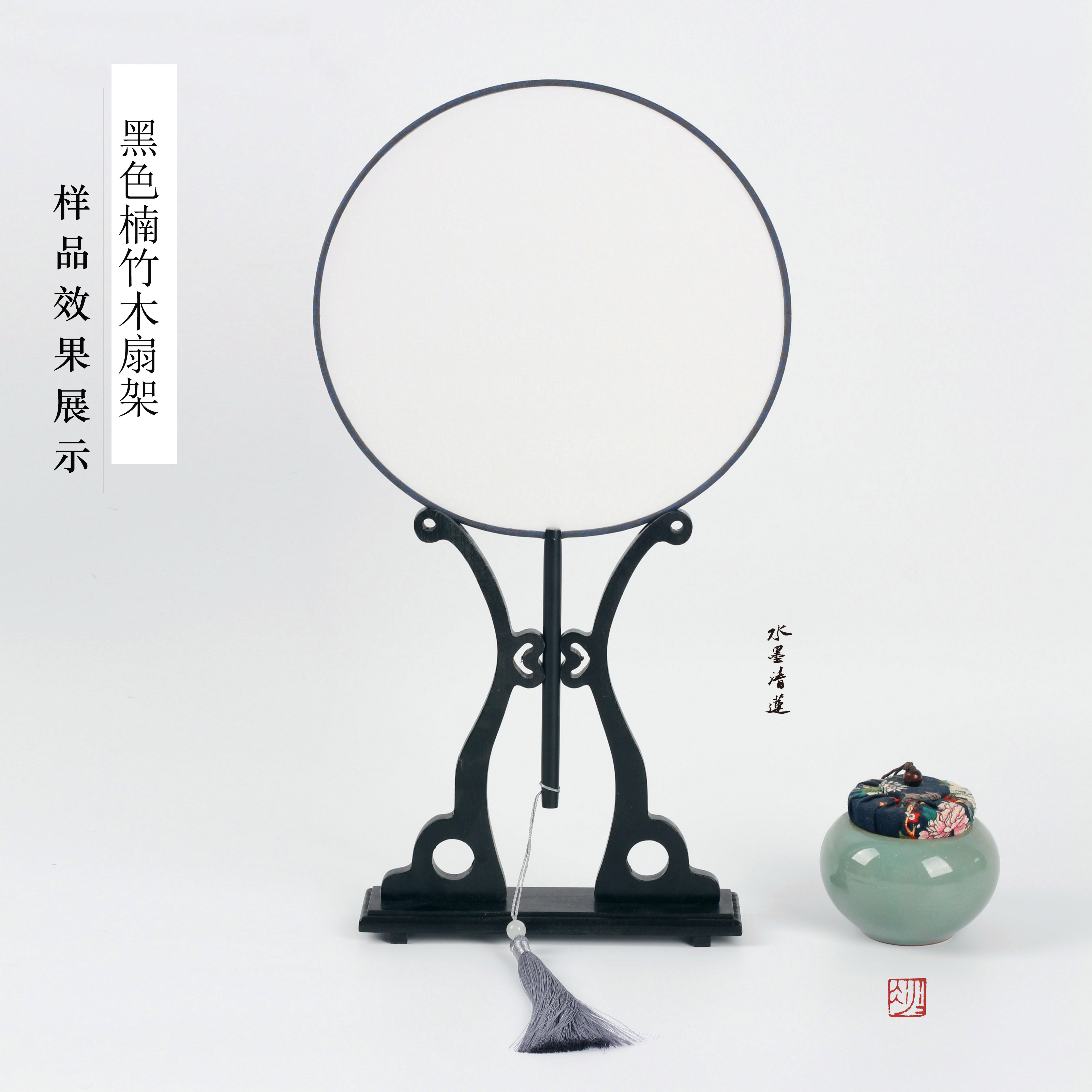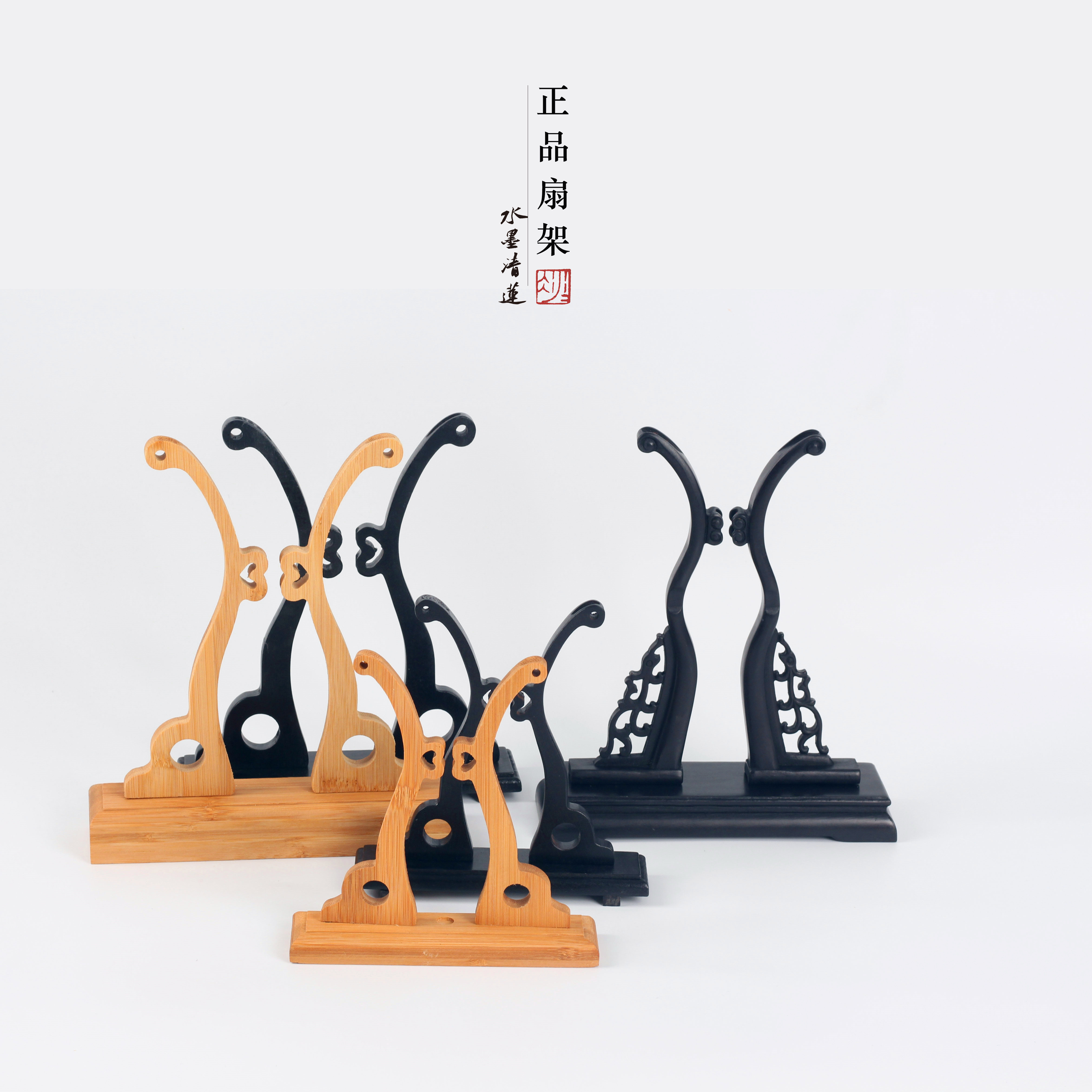水墨清莲楠竹木扇子文房扇架团扇扇托专用配件可拆卸扇撑底座宫扇