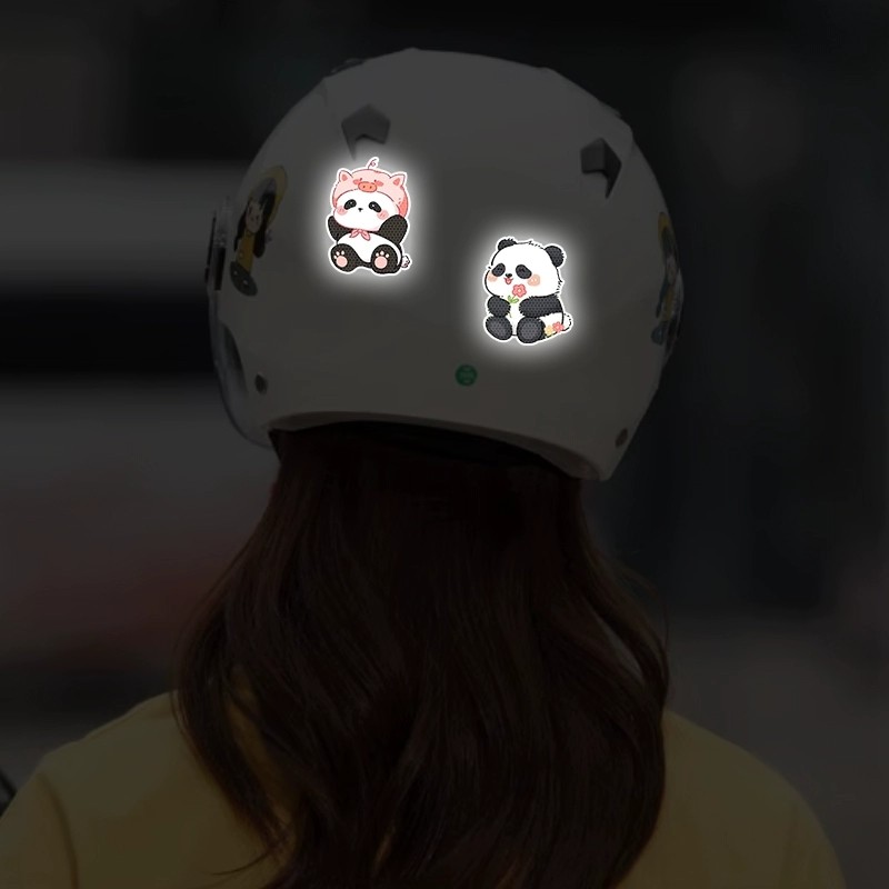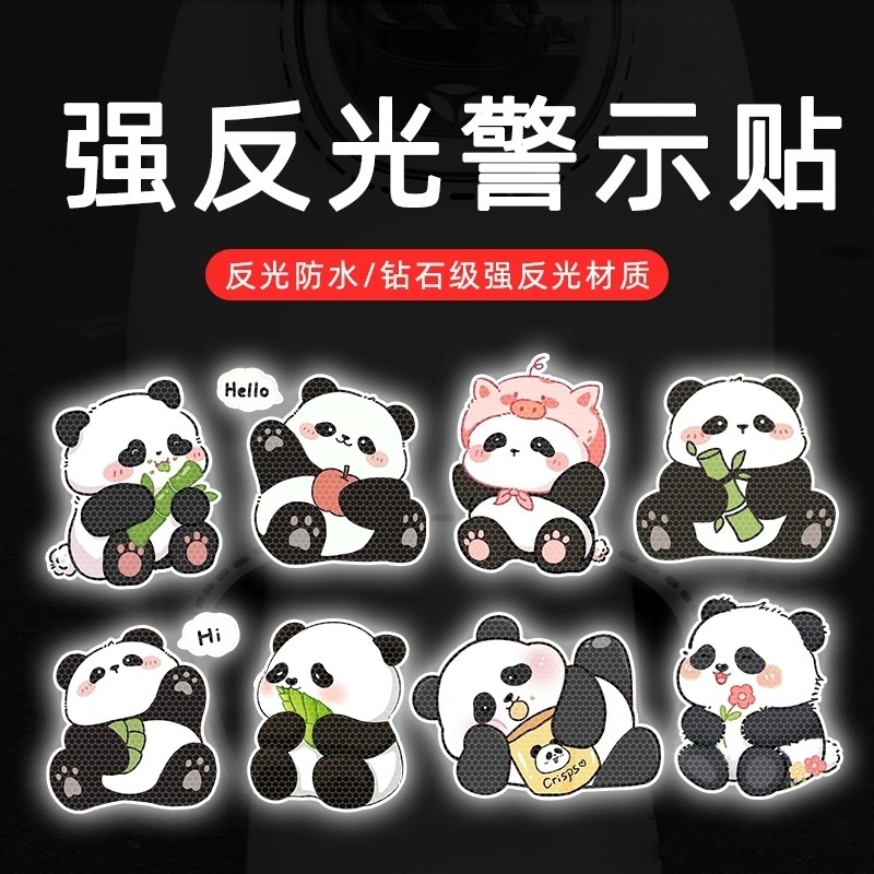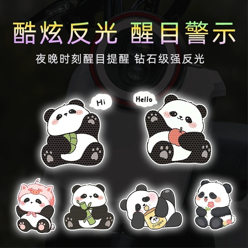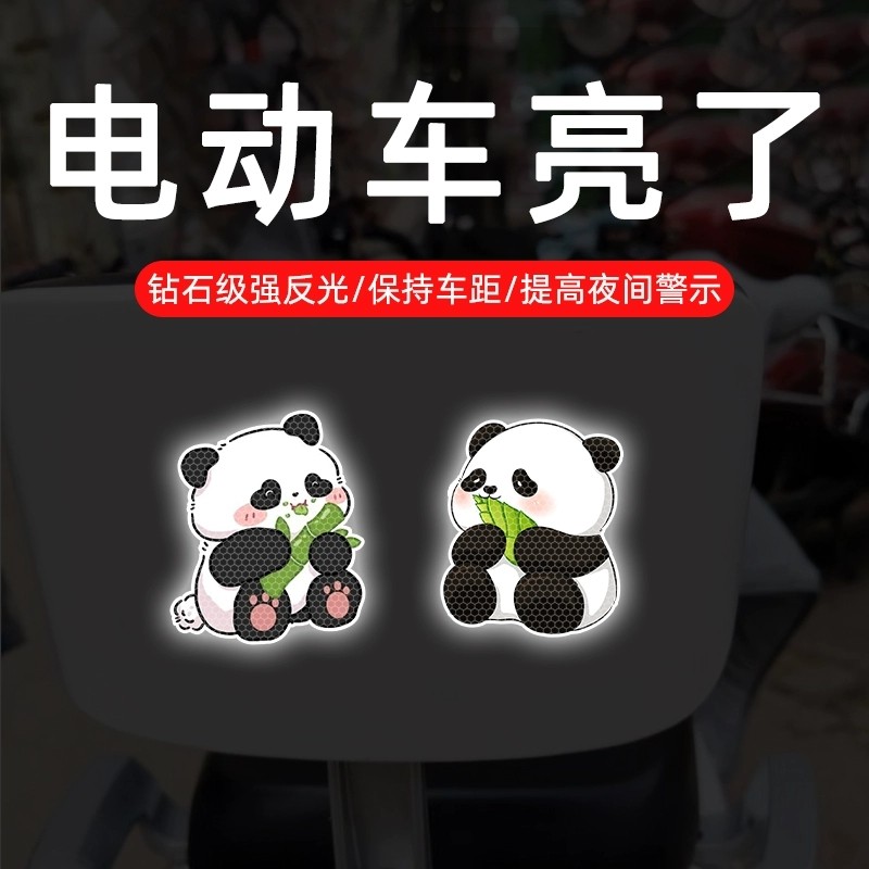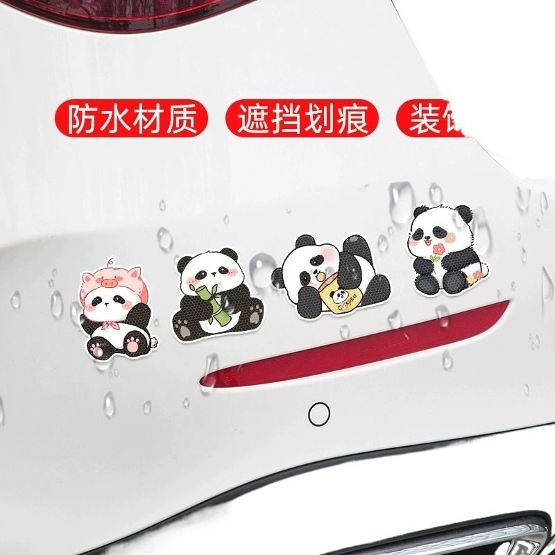 电动车贴纸熊猫卡通个性爱玛电瓶车反光车贴雅迪划痕遮挡汽车装饰