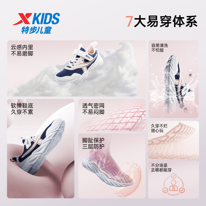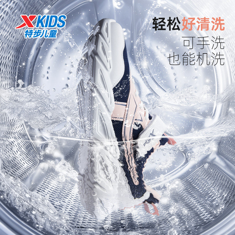 特步童鞋秋季新款女童中大童轻便软弹舒适百搭魔术贴儿童运动跑鞋