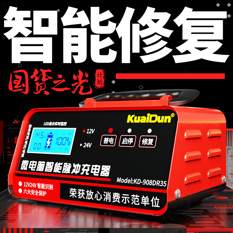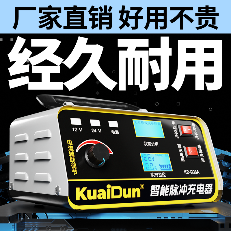 品牌便捷式12V24V电瓶充电器智能全自动充电机大功率修复启停通用