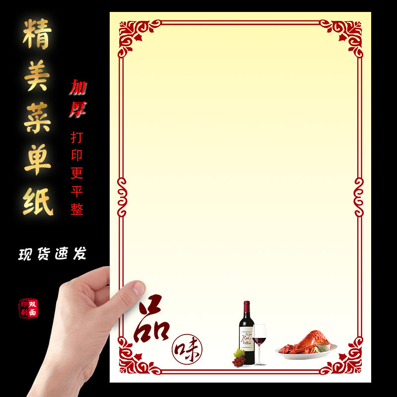 菜单纸a4菜谱打印纸o内页内芯纸双面印刷手写塑封餐饮饭店菜单单