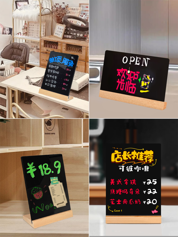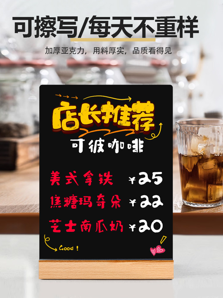 手绘小黑板桌面摆摊展示牌手写板广告牌创意DIY标价可擦手绘菜单价目表制作奶茶咖啡店西餐厅餐饮地摊用立牌