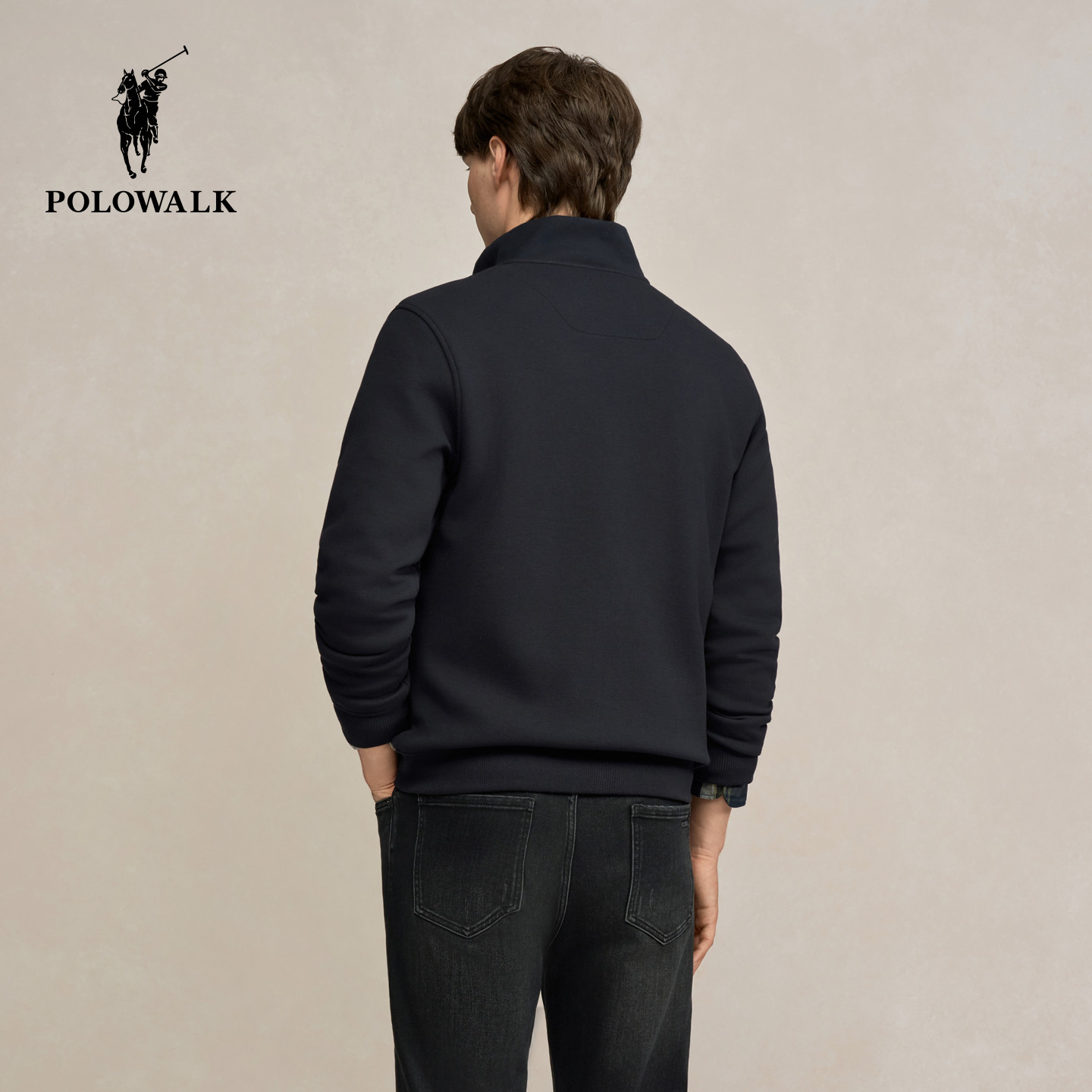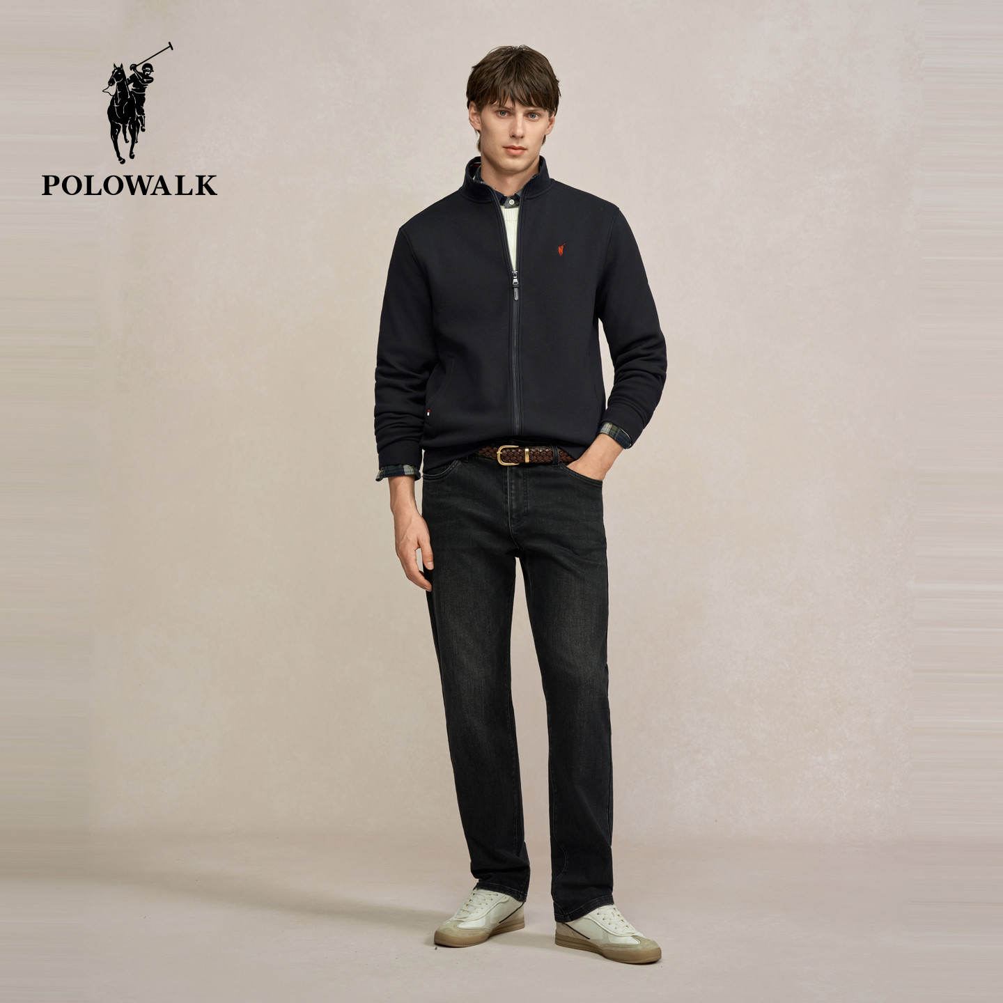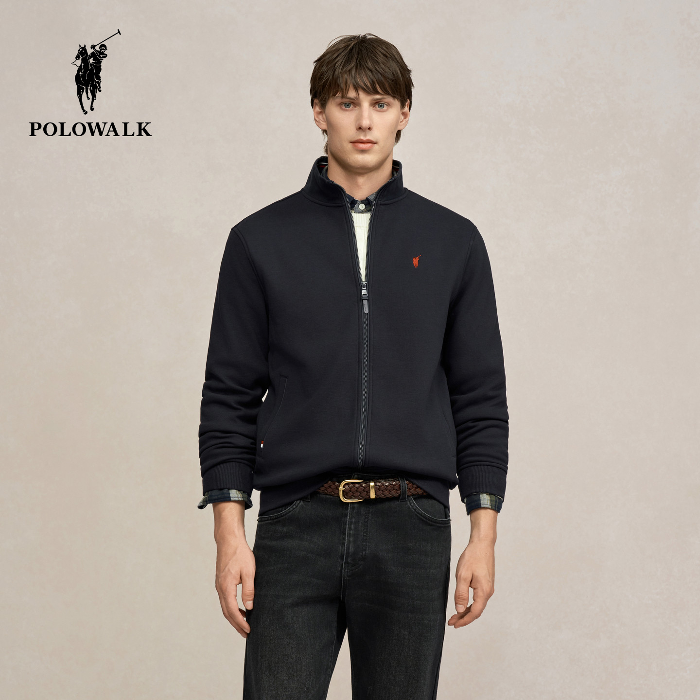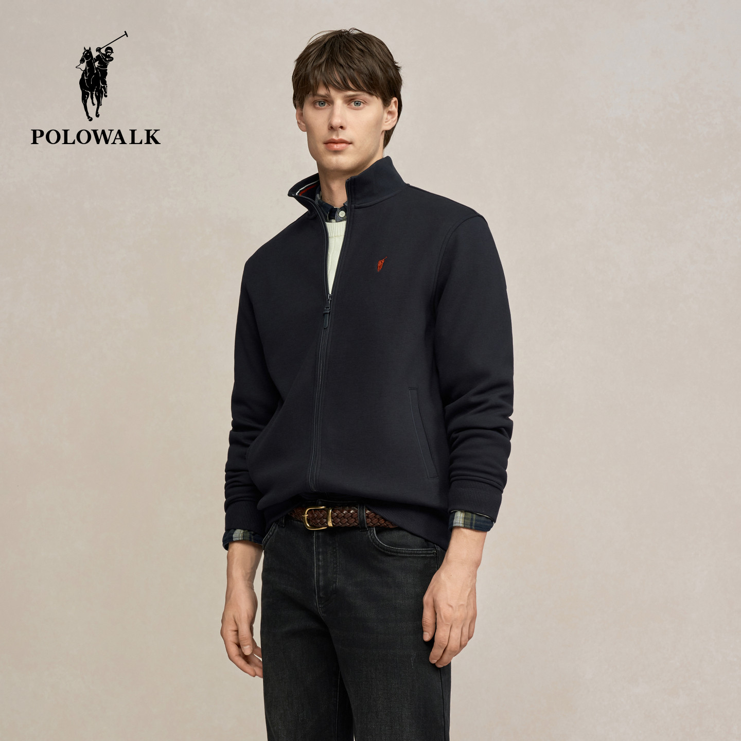 POLOWALK男式卫衣2025冬季新品加绒舒适通勤立领纯色拉链保暖外套