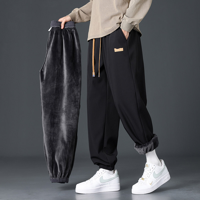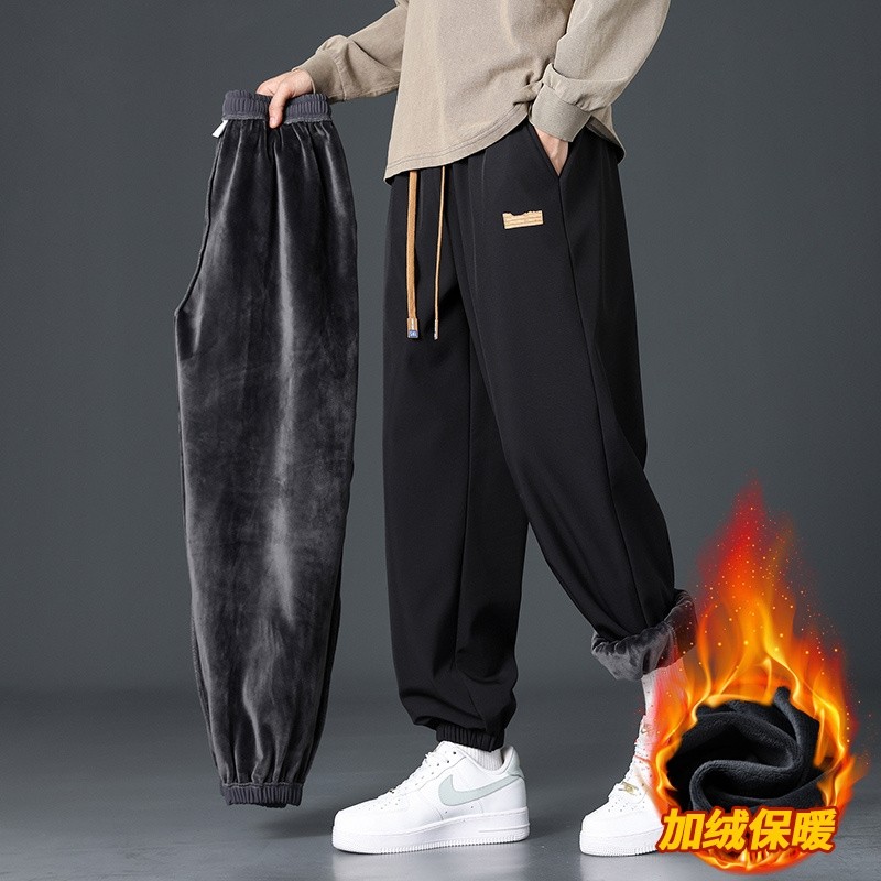 加绒加厚裤子男士秋冬季2025新款保暖棉裤休闲长裤青少年束脚卫裤