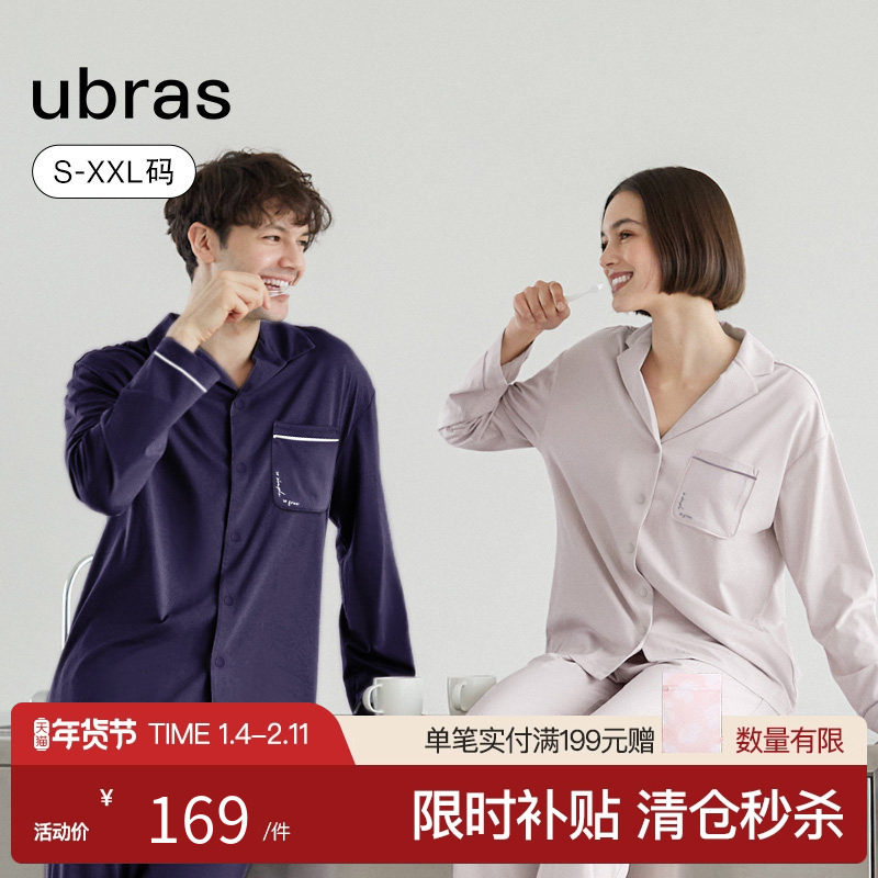 ubras云棉长袖开襟家居服套装套头翻领情侣款舒适秋冬外穿睡衣