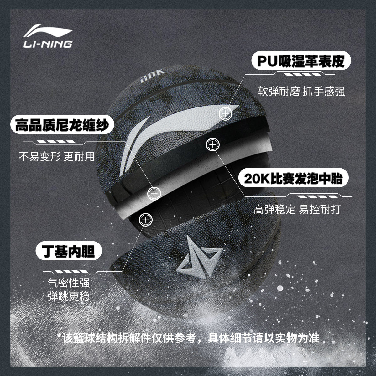 李宁957篮球室外水泥地耐磨防尘吸湿PU男7号专业比赛训练蓝球20k
