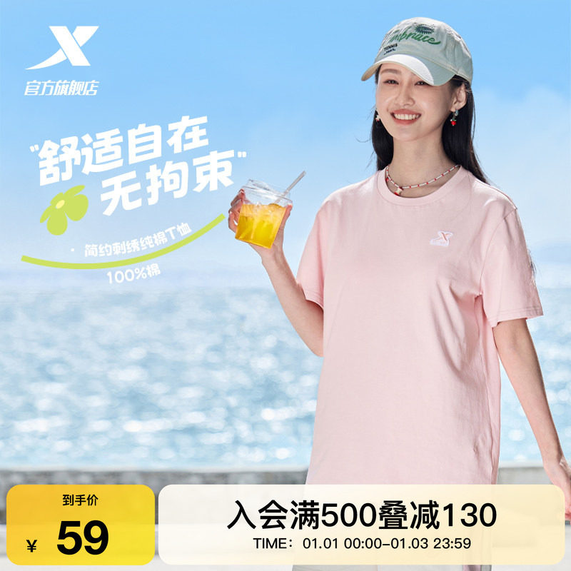 王鹤棣同款丨特步棉T男女2025年新款夏季冰丝T恤情侣半袖运动短袖