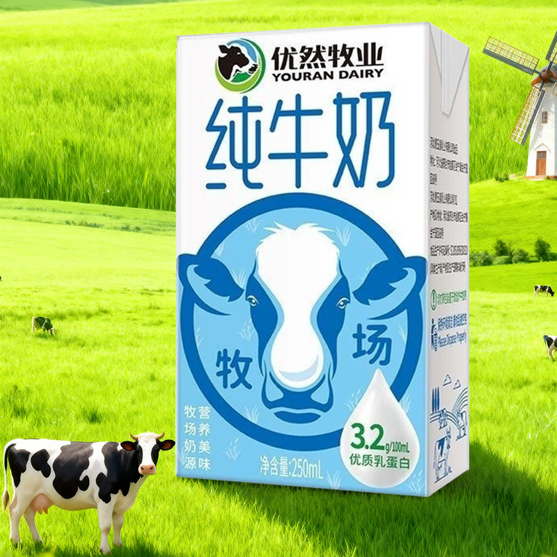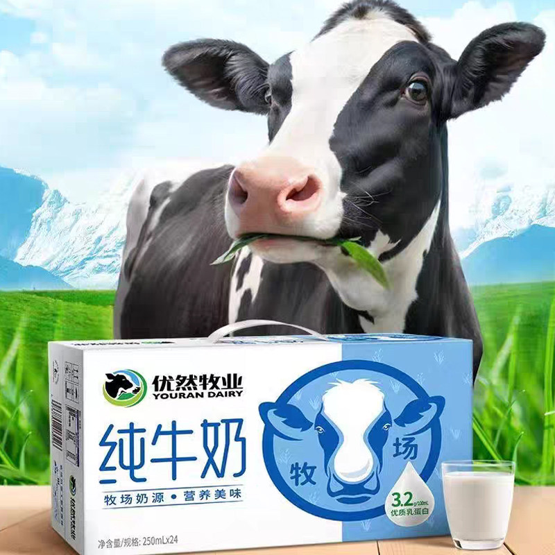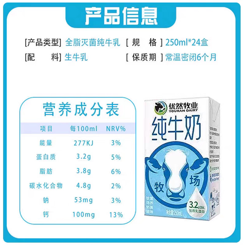 优然牧业纯牛奶250ml*24盒高蛋白营养健康早餐