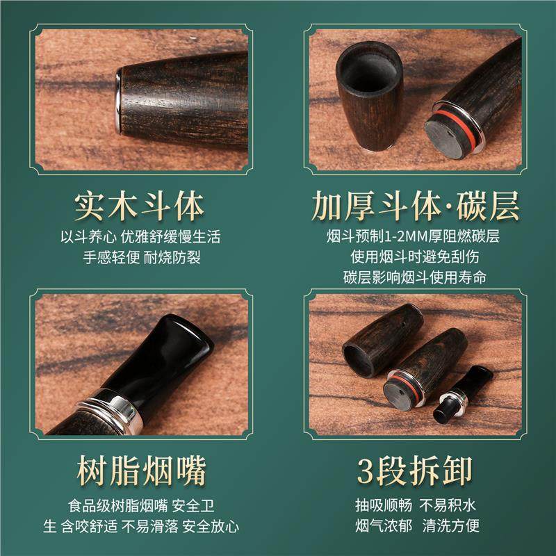 福腾实木雪茄烟斗鱼雷斗烟具全套 老式随身烟斗工具红绿木纹款式