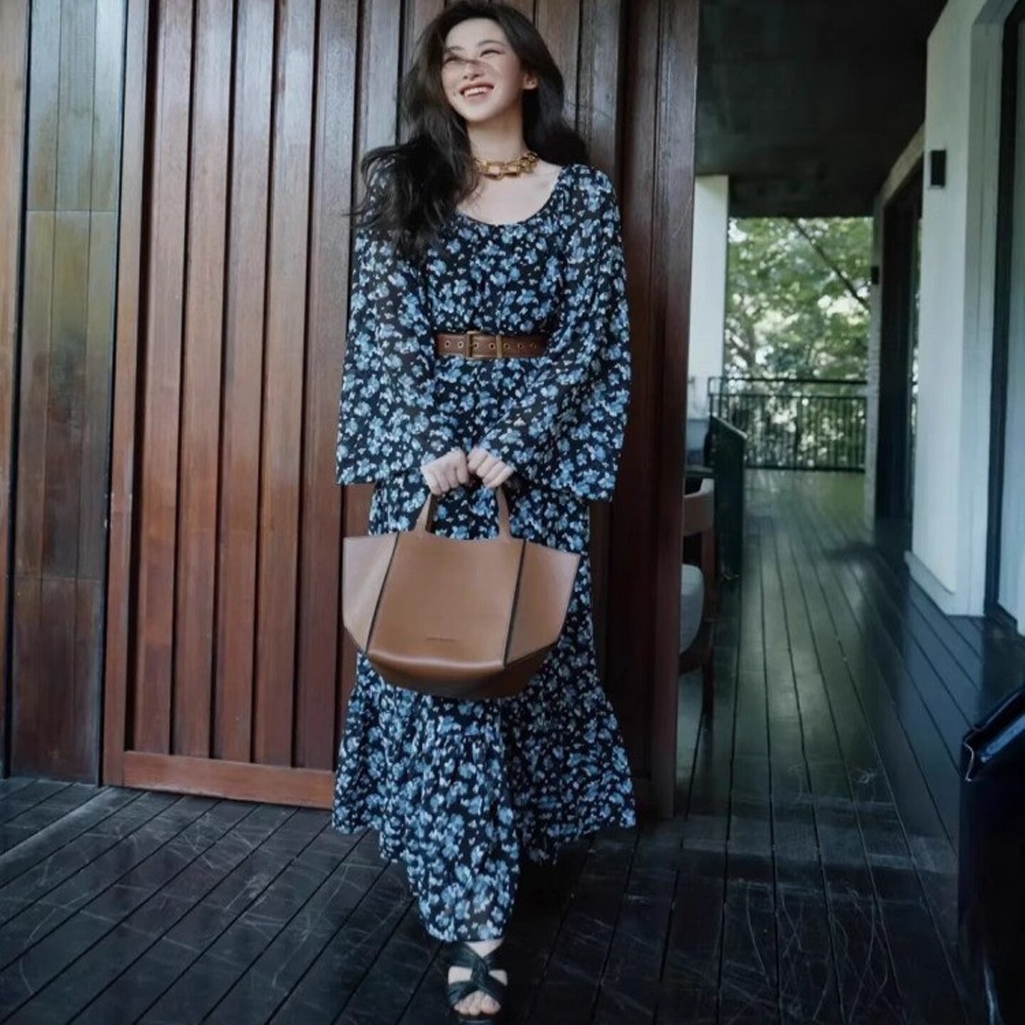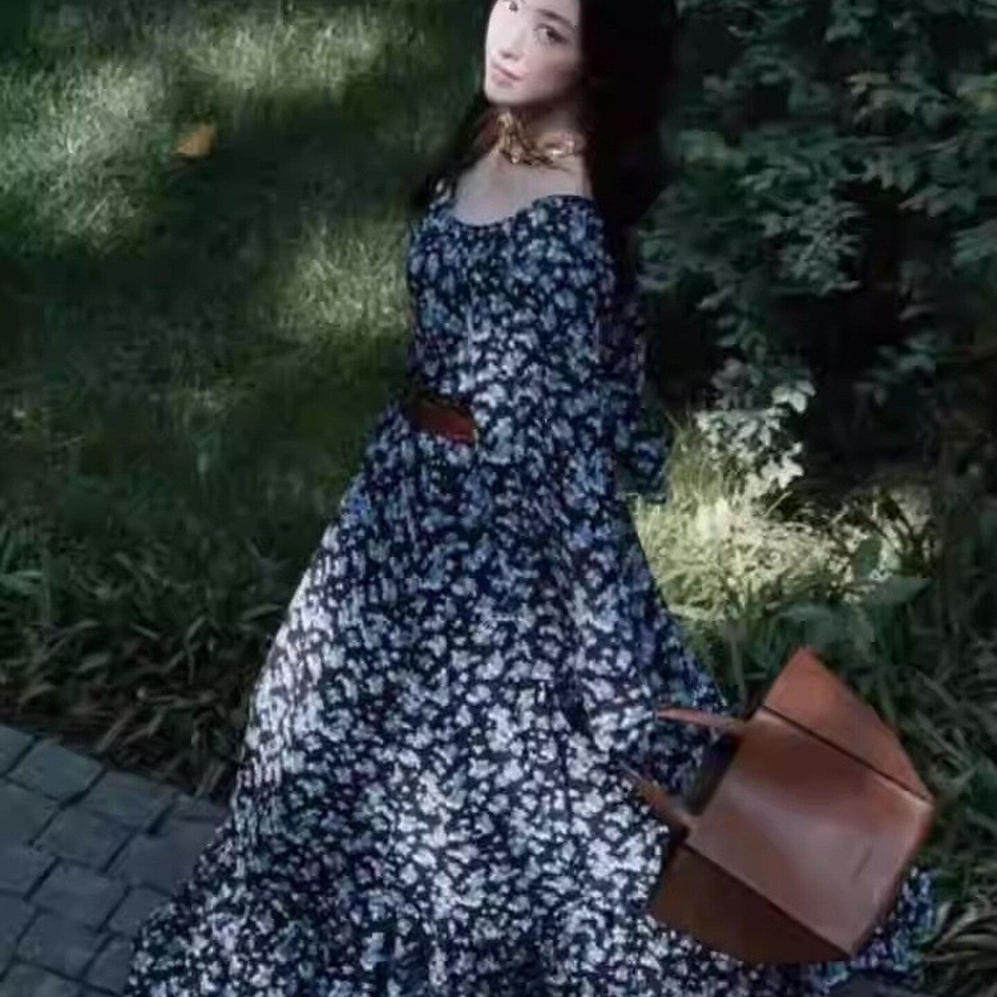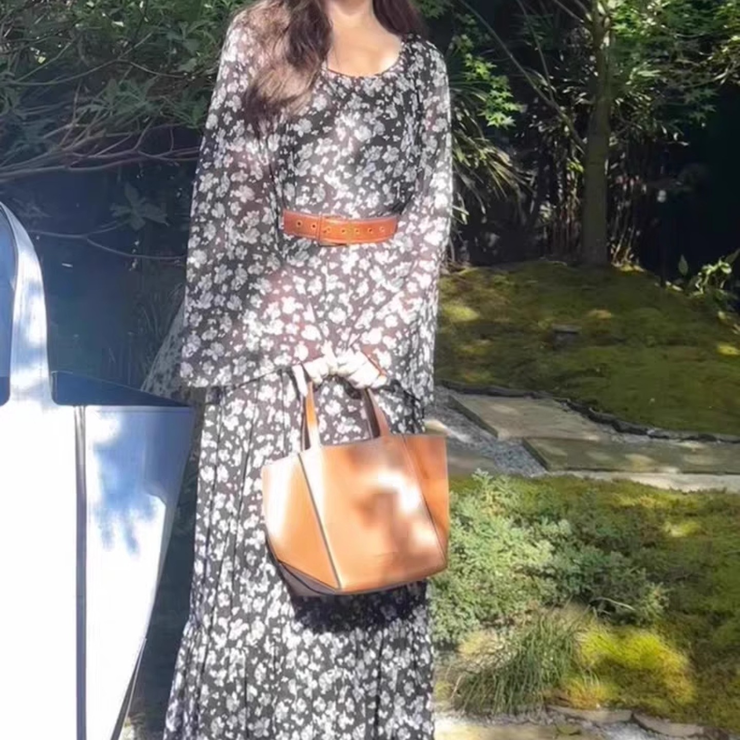 朱珠明星同款法式复古碎花雪纺连衣裙女夏季宽松高级感小个子裙子