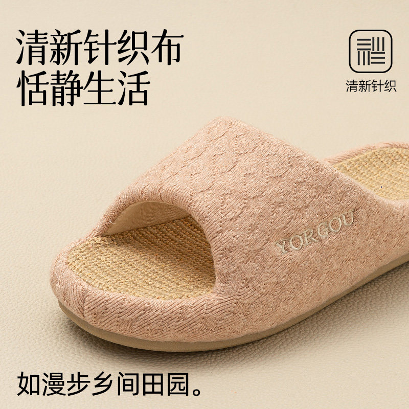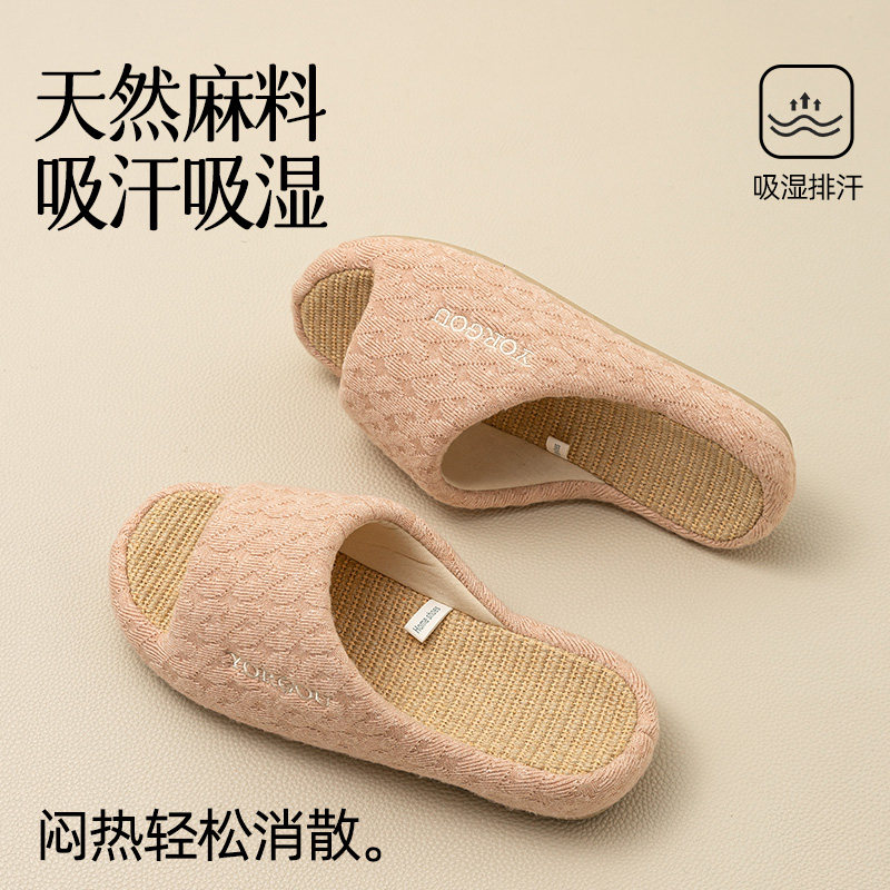 高级感居家布艺亚麻拖鞋夏季女士室内防滑男抗菌防臭四季通用棉麻