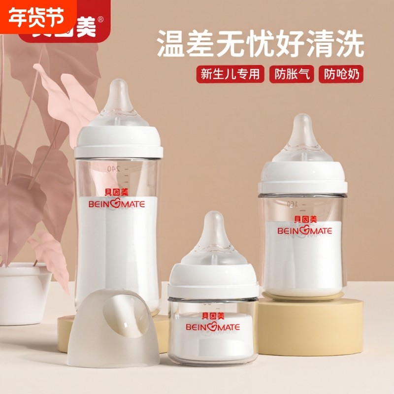 贝因美奶瓶宽口径玻璃奶瓶新生婴儿宝宝0-6个月1岁以上防胀气奶嘴