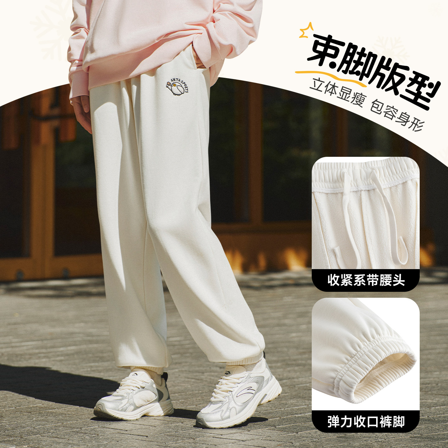 安踏雪鸮卫裤 | 加绒保暖运动束脚裤女冬季针织宽松休闲百搭卫裤