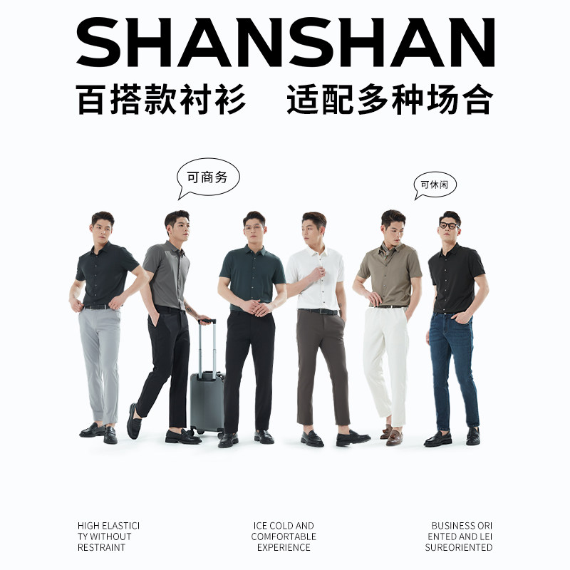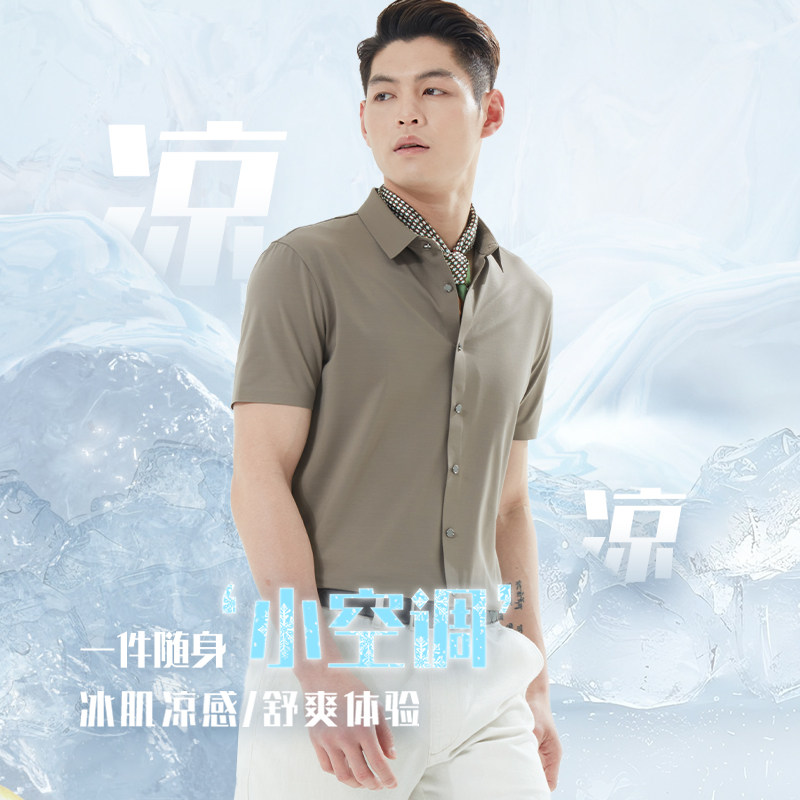 杉杉奥莱凉感高弹短袖衬衫男2025夏季新款男士衬衣男款上衣打底衫