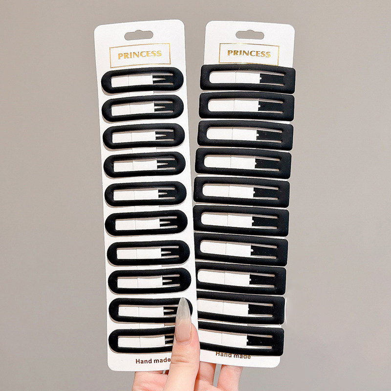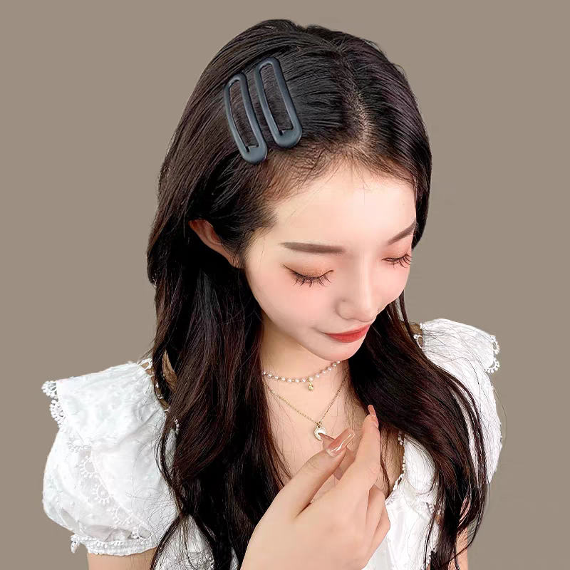 少女小金属刘海碎发一字鸭嘴造型侧边美妆发夹女发卡黑色夹子发饰