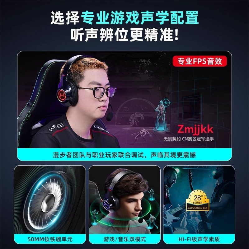 Edifier/漫步者 G2无线版头戴式耳机电竞游戏带麦有线蓝牙