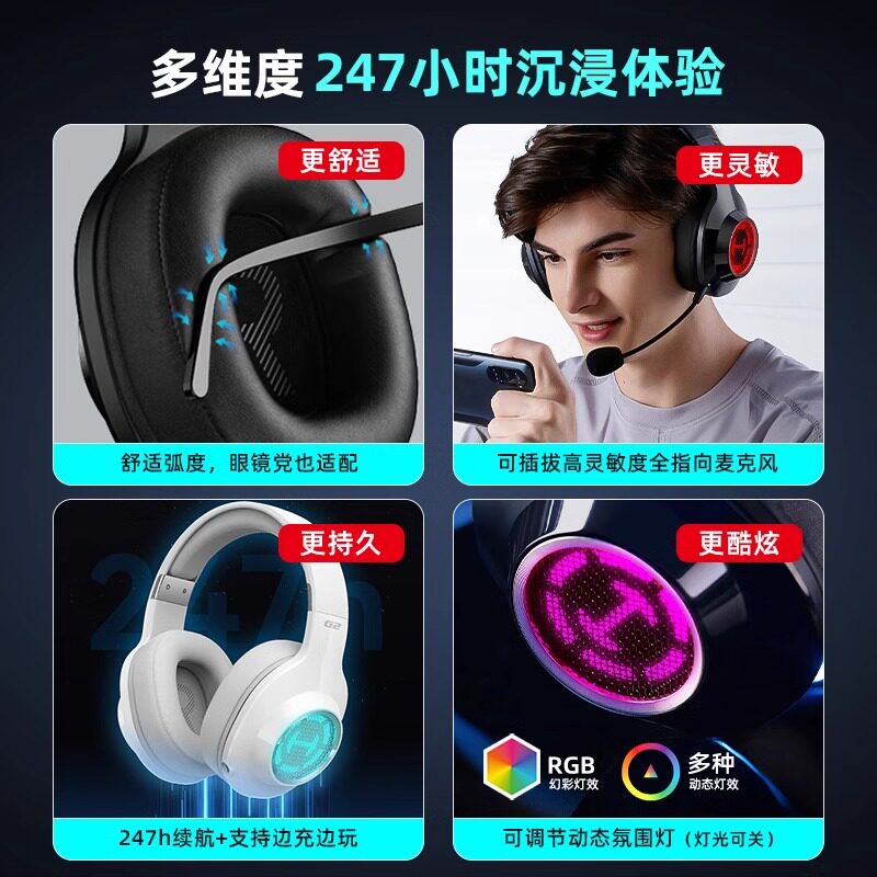 觅声阿尔法2.4G三模无线游戏耳机头戴式蓝牙台式电脑fps电竞专用