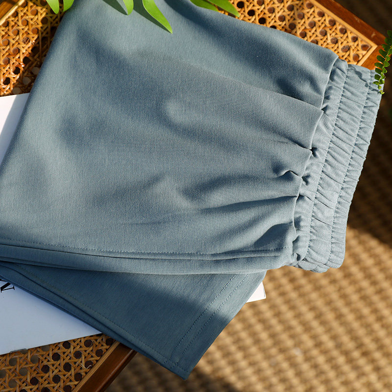 百分百纯棉女休闲家居睡裤宽松大码高腰春夏秋薄款长裤直筒空调裤