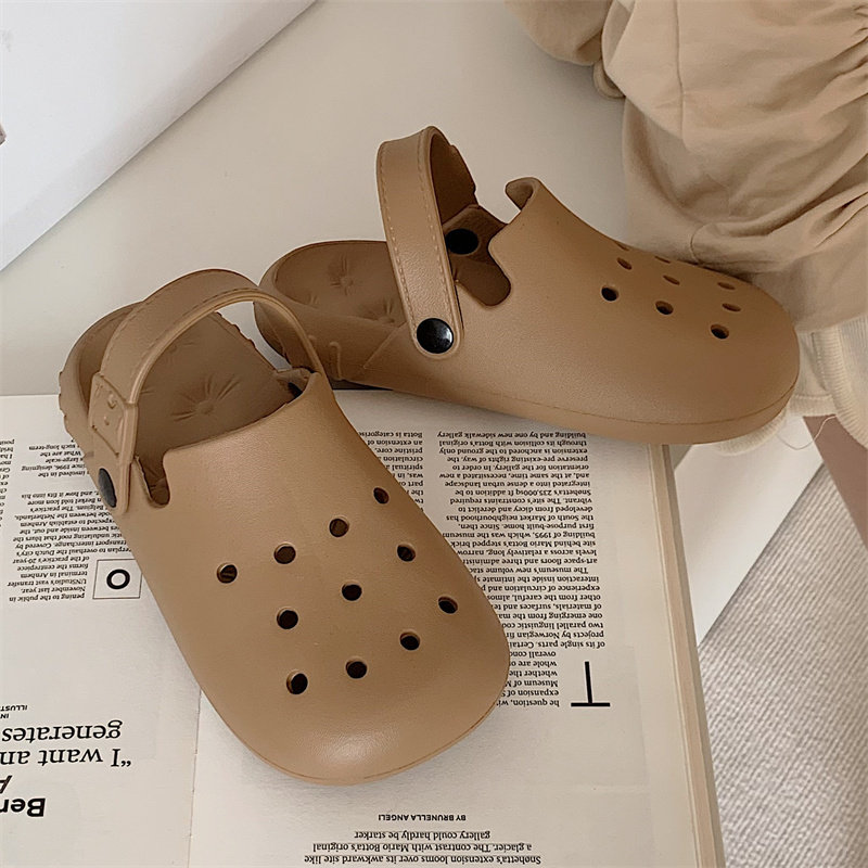 细细条 EVA洞洞鞋女夏学生百搭复古日系可爱包头沙滩拖鞋软底凉鞋