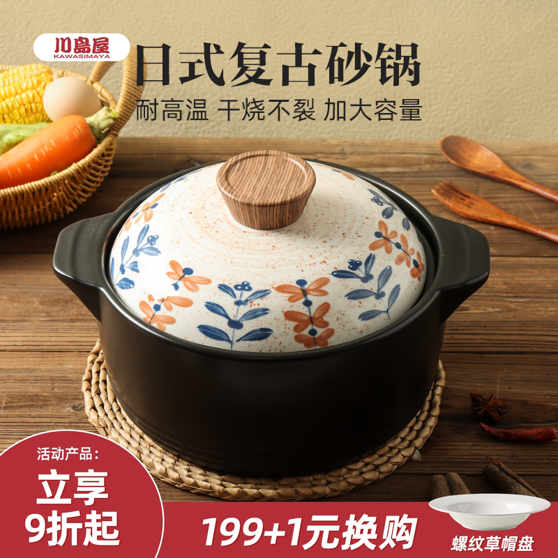 川岛屋日式砂锅煲耐高温干烧不裂家用燃气灶专用大容量炖汤煲汤锅