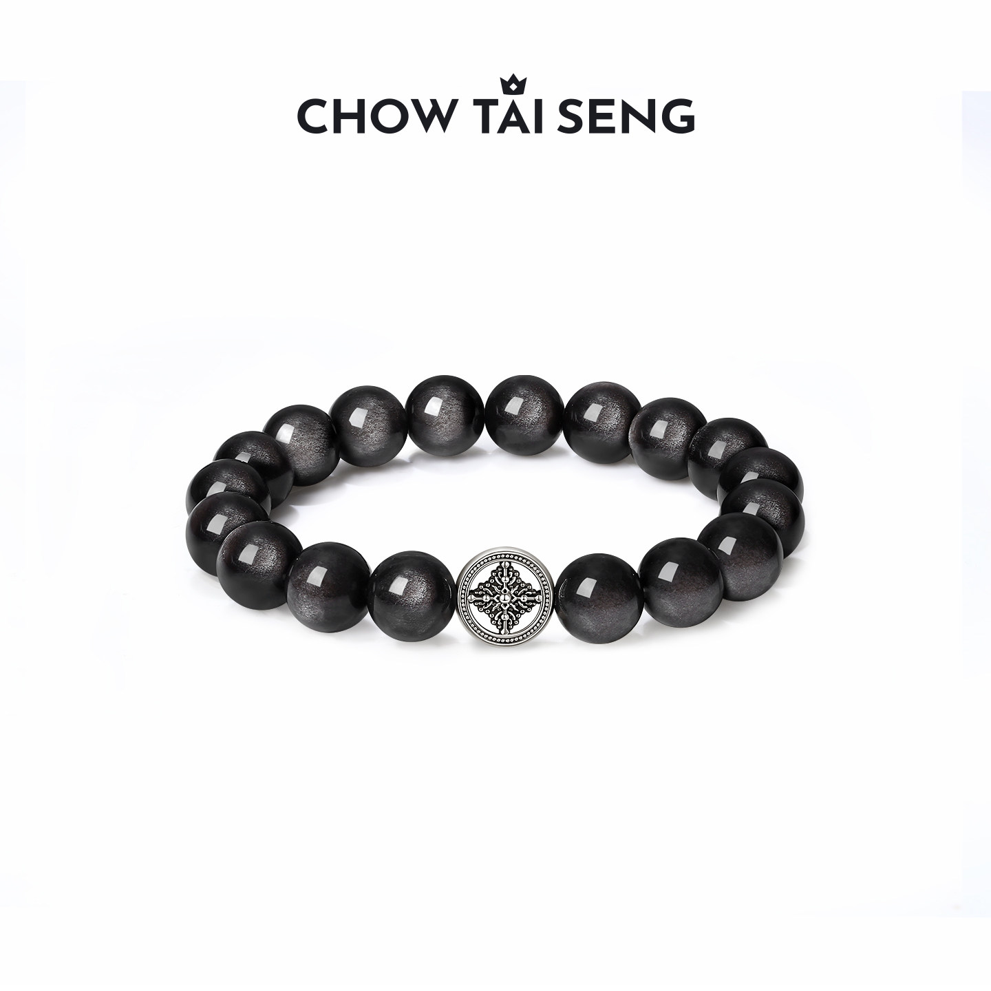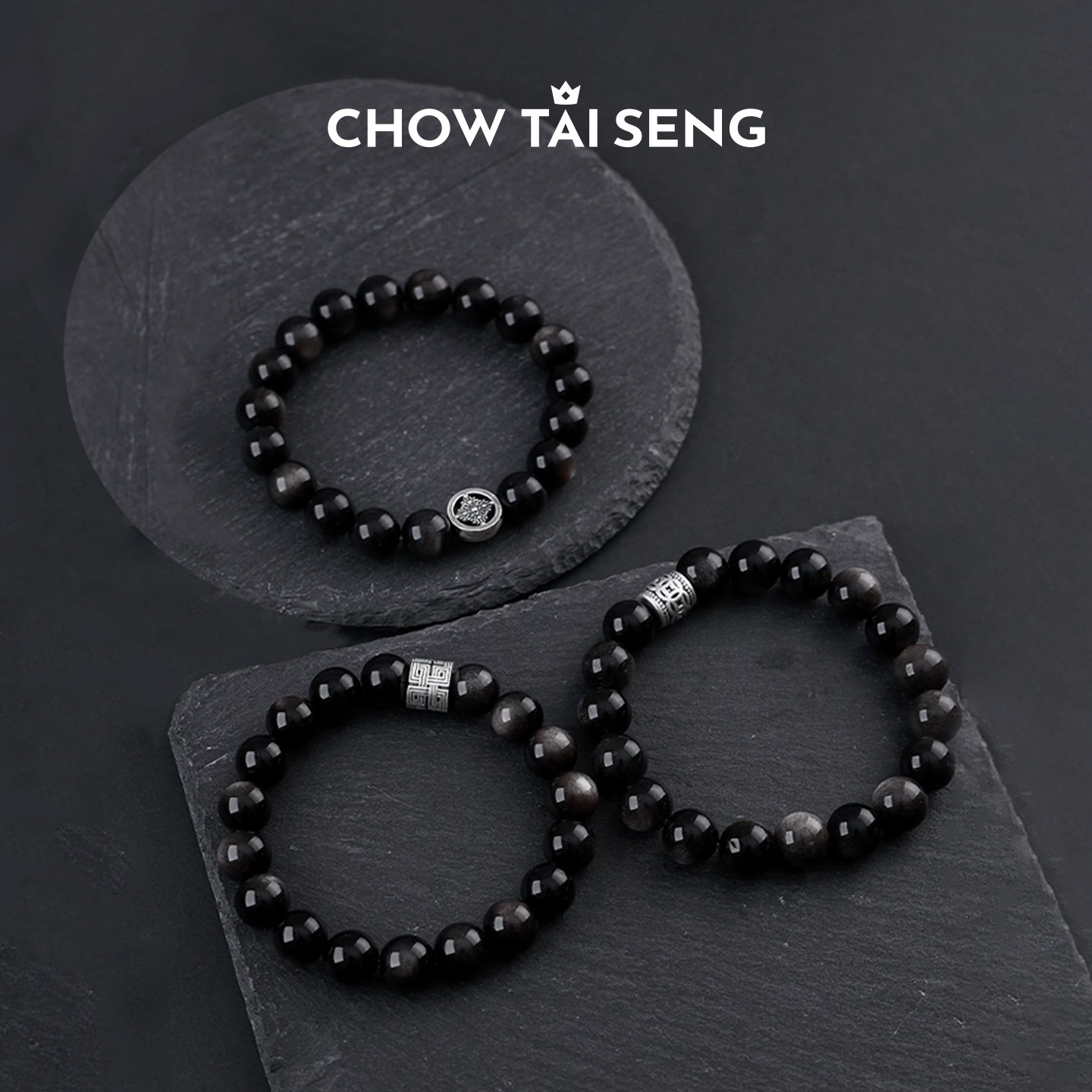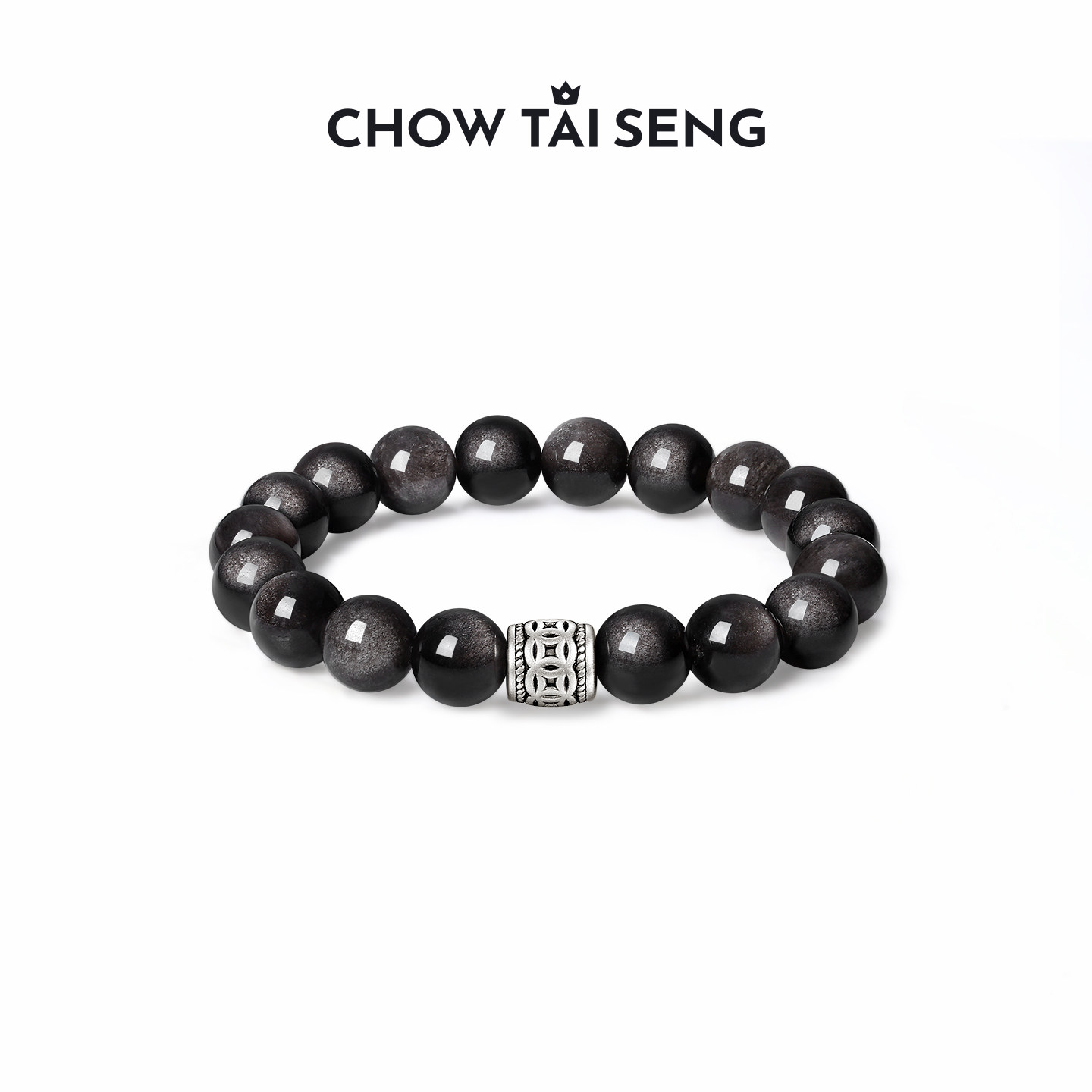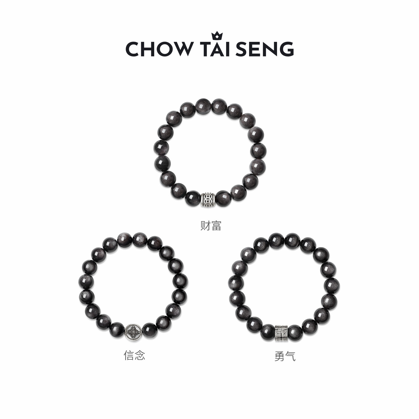 【新品】周大生黑曜岩手串男纯银S925国潮男士手链生日礼物送男友